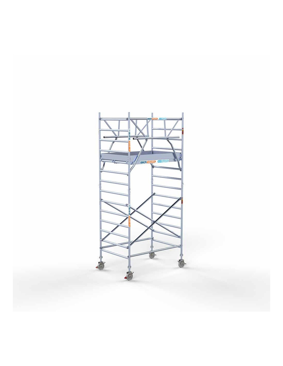 Na compra do andaime móvel tipo torre 135x190x520 metros de altura de trabalho da linha PRO DOBLE SAFE está a adquirir um dos andaimes móveis em alumínio mais seguros do mercado graças ao seu guarda-corpos SAFE INSTALL, que pode montar ainda antes de aceder à plataforma de trabalho, evitando assim o risco de acidentes. Proteja o seu trabalho em altura graças a esta torre de andaime móvel 100% homologada e em conformidade com as normas europeias. Este modelo tem uma altura de trabalho de 5,20 metros, mas pode estendê-la até 10,20 metros graças à sua natureza expansível.