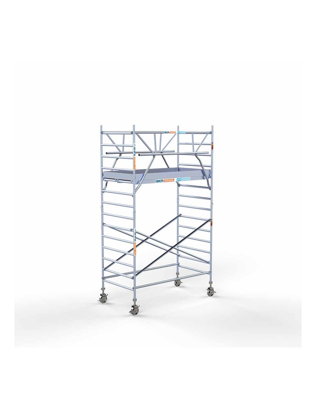 Na compra do andaime móvel tipo torre 135x190x520 metros de altura de trabalho da linha PRO DOBLE SAFE está a adquirir um dos andaimes móveis em alumínio mais seguros do mercado graças ao seu guarda-corpos SAFE INSTALL, que pode montar ainda antes de aceder à plataforma de trabalho, evitando assim o risco de acidentes. Proteja o seu trabalho em altura graças a esta torre de andaime móvel 100% homologada e em conformidade com as normas europeias. Este modelo tem uma altura de trabalho de 5,20 metros, mas pode estendê-la até 10,20 metros graças à sua natureza expansível.