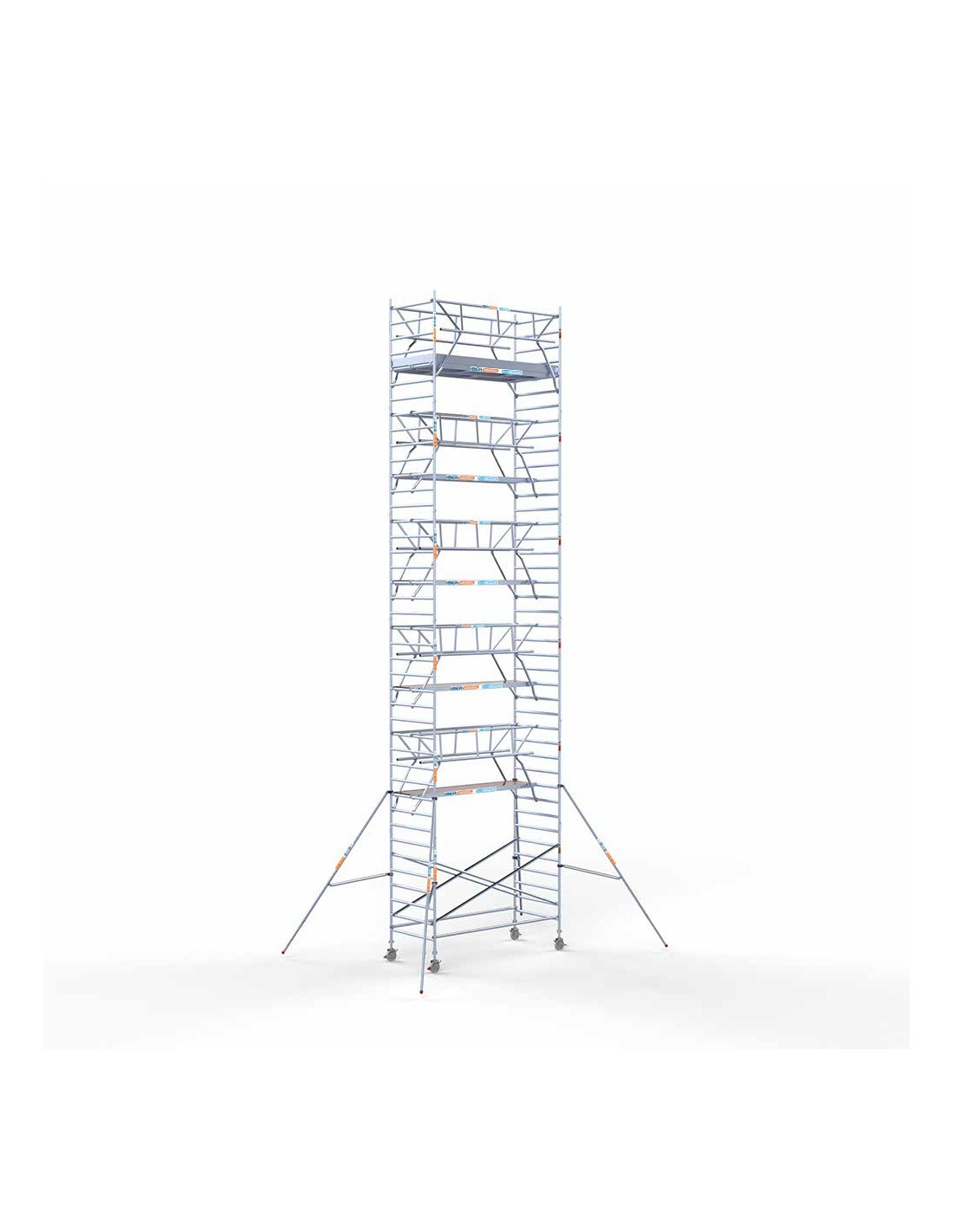 Na compra do andaime móvel tipo torre 135x305x1320 metros de altura de trabalho da linha PRO DOBLE SAFE está a adquirir um dos andaimes móveis em alumínio mais seguros do mercado graças ao seu guarda-corpos SAFE INSTALL, que pode montar ainda antes de aceder à plataforma de trabalho, evitando assim o risco de acidentes. Proteja o seu trabalho em altura graças a esta torre de andaime móvel 100% homologada e em conformidade com as normas europeias.