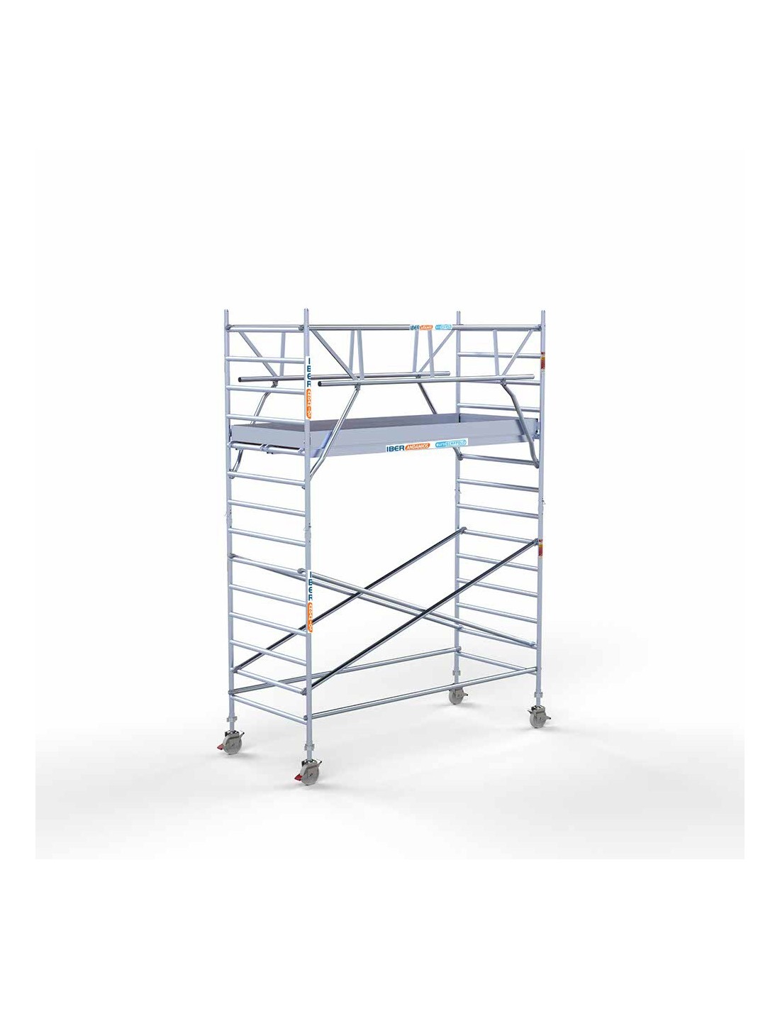 Na compra do andaime móvel tipo torre 135x305x520 metros de altura de trabalho da linha PRO DOBLE SAFE está a adquirir um dos andaimes móveis em alumínio mais seguros do mercado graças ao seu guarda-corpos SAFE INSTALL, que pode montar ainda antes de aceder à plataforma de trabalho, evitando assim o risco de acidentes. Proteja o seu trabalho em altura graças a esta torre de andaime móvel 100% homologada e em conformidade com as normas europeias. Este modelo tem uma altura de trabalho de 5,20 metros, mas pode estendê-la até 10,20 metros graças à sua natureza expansível.