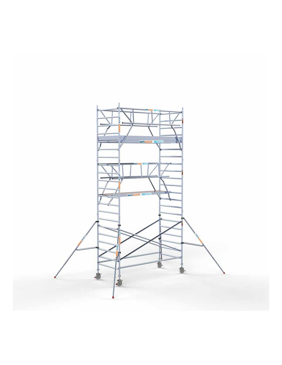 Na compra do andaime móvel tipo torre 135x305x720 metros de altura de trabalho da linha PRO DOBLE SAFE está a adquirir um dos andaimes móveis em alumínio mais seguros do mercado graças ao seu guarda-corpos SAFE INSTALL, que pode montar ainda antes de aceder à plataforma de trabalho, evitando assim o risco de acidentes. Proteja o seu trabalho em altura graças a esta torre de andaime móvel 100% homologada e em conformidade com as normas europeias. Este modelo tem uma altura de trabalho de 7,20 metros, mas pode estendê-la até 10,20 metros graças à sua natureza expansível.