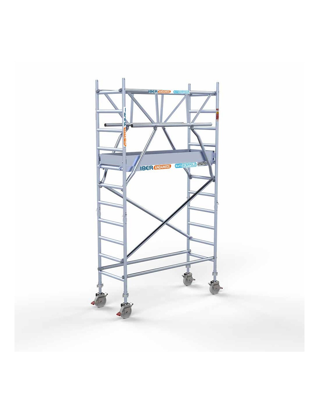 Na compra do andaime móvel tipo torre 75x190x420 metros de altura de trabalho da linha PRO DOBLE SAFE está a adquirir um dos andaimes móveis em alumínio mais seguros do mercado graças ao seu guarda-corpos SAFE INSTALL, que pode montar ainda antes de aceder à plataforma de trabalho, evitando assim o risco de acidentes. Proteja o seu trabalho em altura graças a esta torre de andaime móvel 100% homologada e em conformidade com as normas europeias. Este modelo tem uma altura de trabalho de 4,20 metros, mas pode estendê-la até 10,20 metros graças à sua natureza expansível.