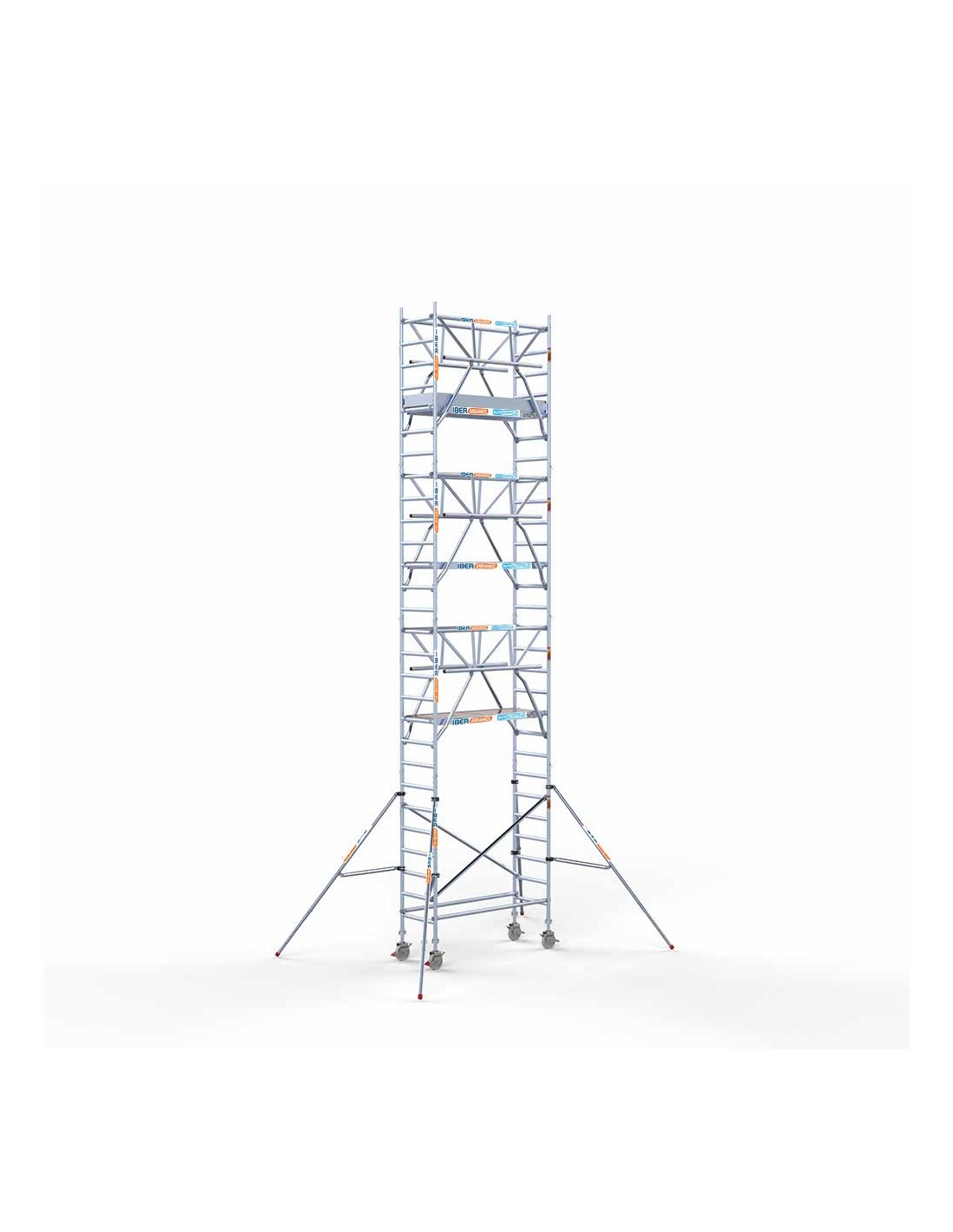 Na compra do andaime móvel tipo torre 75x190x920 metros de altura de trabalho da linha PRO DOBLE SAFE está a adquirir um dos andaimes móveis em alumínio mais seguros do mercado graças ao seu guarda-corpos SAFE INSTALL, que pode montar ainda antes de aceder à plataforma de trabalho, evitando assim o risco de acidentes. Proteja o seu trabalho em altura graças a esta torre de andaime móvel 100% homologada e em conformidade com as normas europeias. Este modelo tem uma altura de trabalho de 9,20 metros, mas pode estendê-la até 10,20 metros graças à sua natureza expansível.
