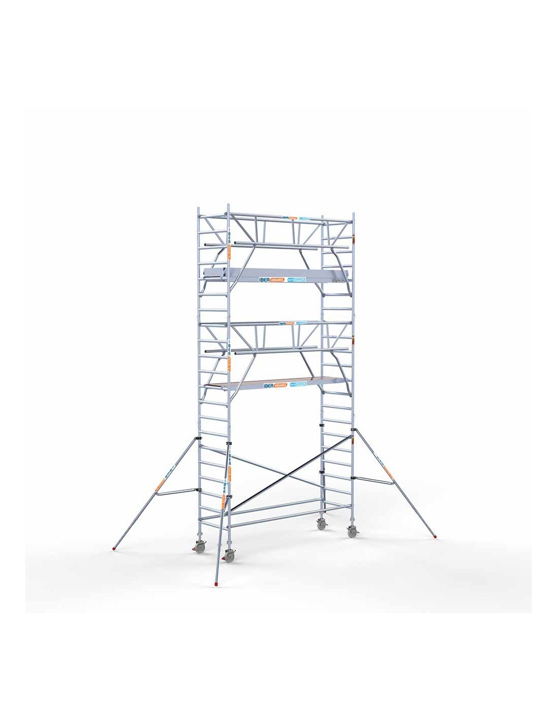 Na compra do andaime móvel tipo torre 90x305x720 metros de altura de trabalho da linha PRO DOBLE SAFE está a adquirir um dos andaimes móveis em alumínio mais seguros do mercado graças ao seu guarda-corpos SAFE INSTALL, que pode montar ainda antes de aceder à plataforma de trabalho, evitando assim o risco de acidentes. Proteja o seu trabalho em altura graças a esta torre de andaime móvel 100% homologada e em conformidade com as normas europeias. Este modelo tem uma altura de trabalho de 7,20 metros, mas pode estendê-la até 10,20 metros graças à sua natureza expansível.