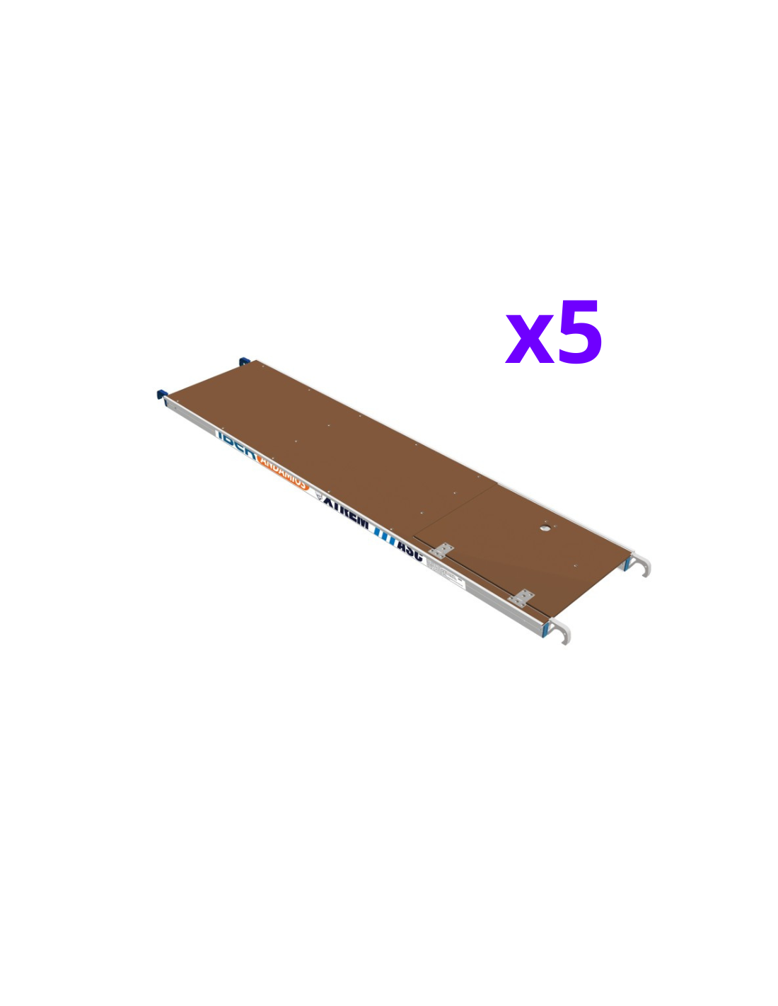 - 5 Plataformas de 250 cm com portinhola, repelentes de água e antiderrapantes
