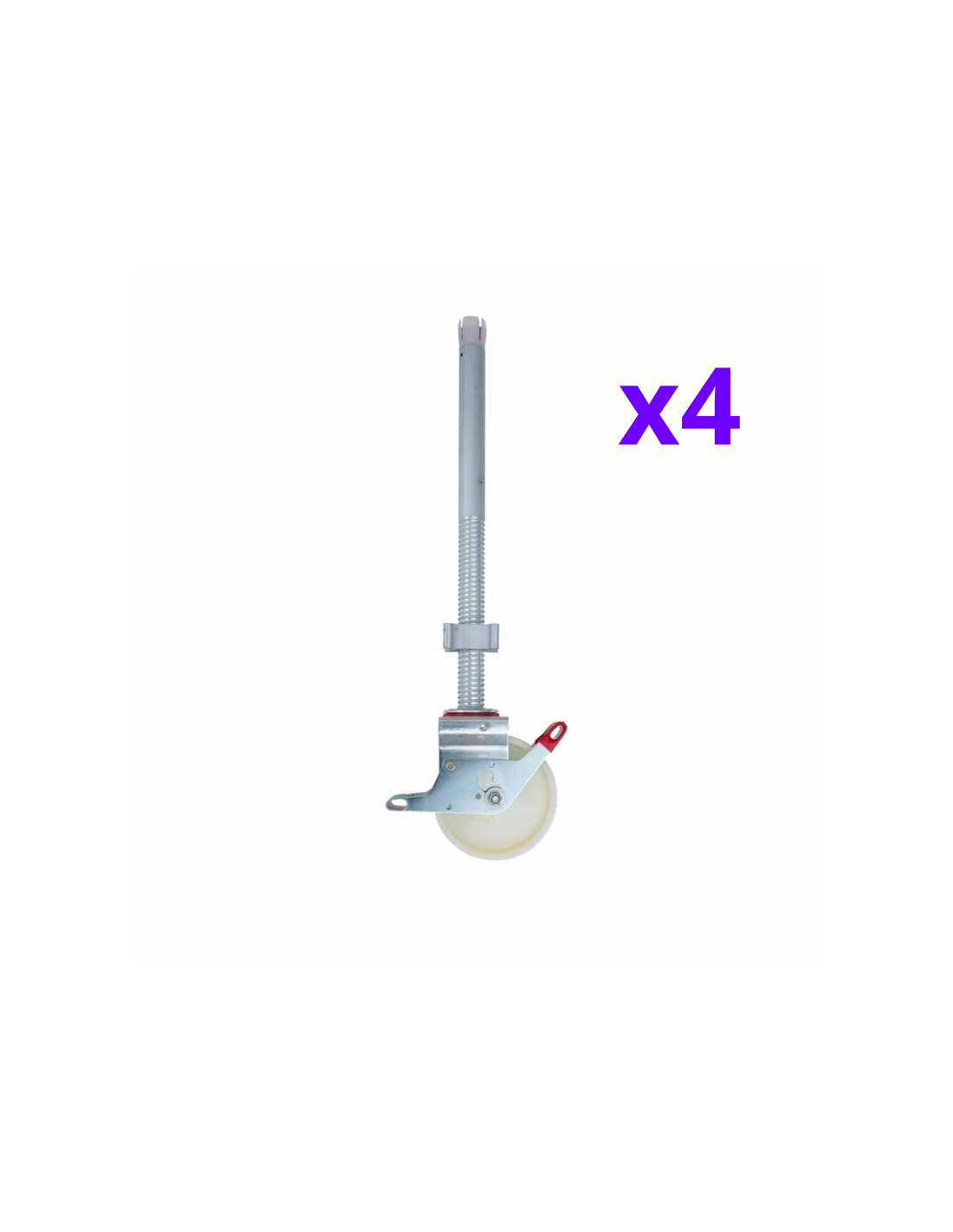 - 4 rodas em nylon com eixo em alumínio, capacidade de carga máxima de 800kg