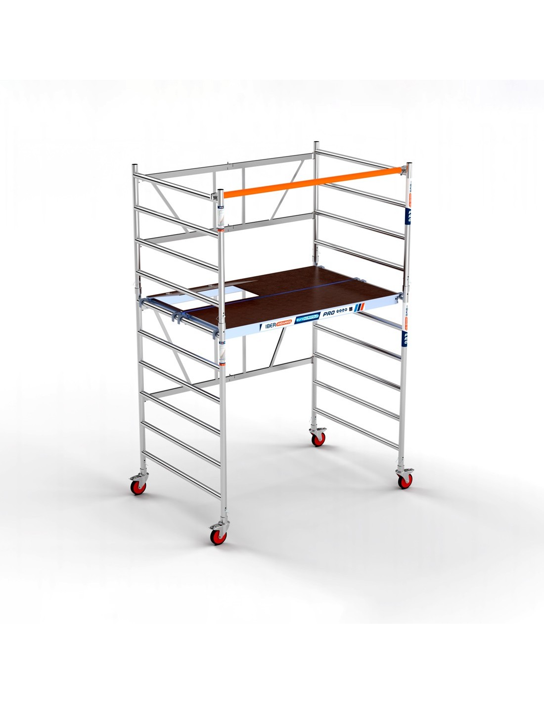 Andaime dobrável em alumínio 135x190 com altura de trabalho de 3,85 metros sem e com portinhola. Um modelo de alta qualidade pensado para profissionais graças à sua resistência e versatilidade. Foi especialmente concebido para trabalhos de interiores, graças ao seu tamanho e aspecto compacto, que lhe permitirá transportá-lo para onde quiser sem ter de o desmontar. Fácil de instalar, deixe-o pronto em 3 minutos.