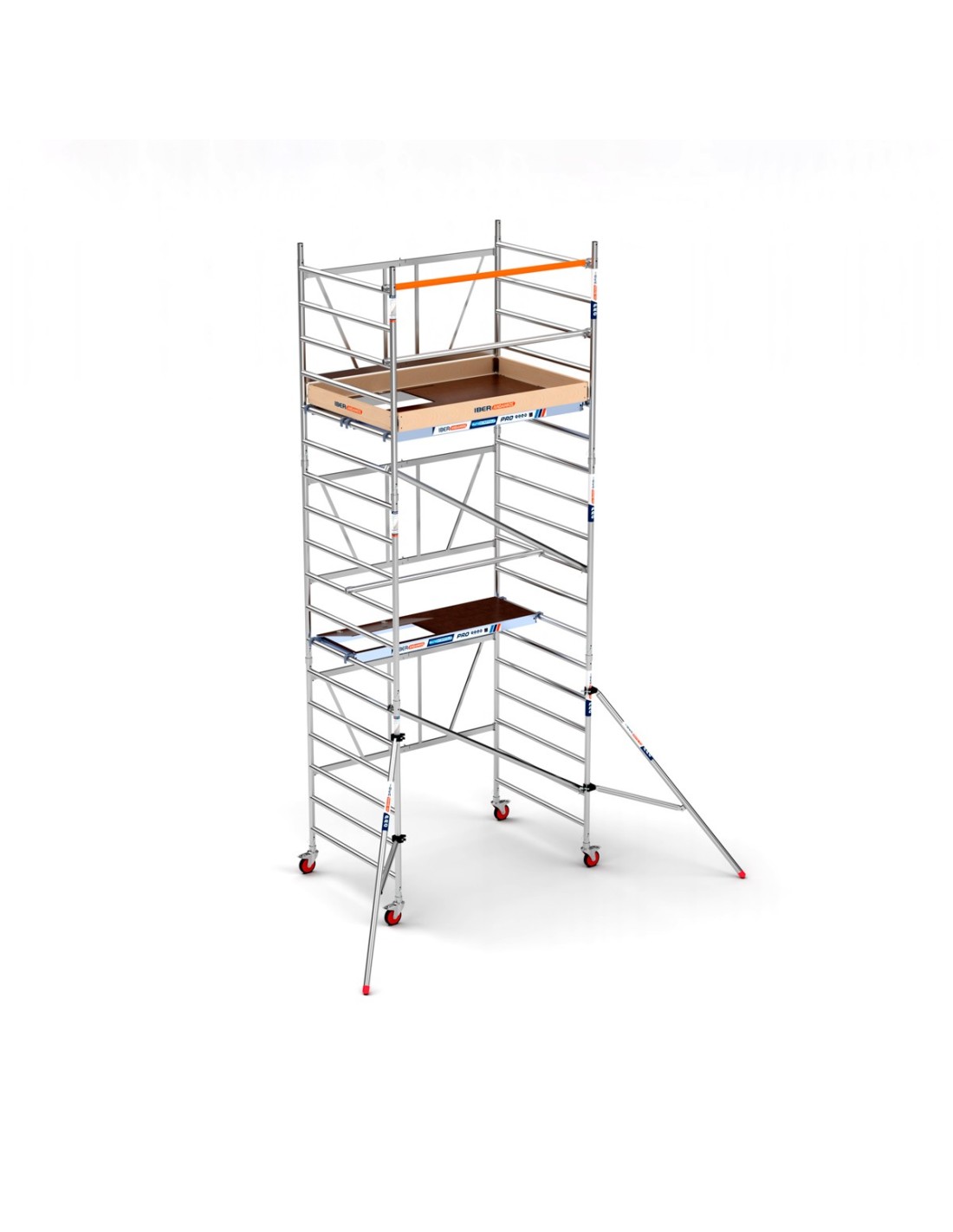 Andaime dobrável em alumínio 135x190 e 6,50 metros de altura de trabalho com estabilizadores e rodapés, de grande qualidade e versatilidade, pois pode ser utilizado em todo o tipo de obras. Fácil de manusear e de montar, pode até movê-lo sem ter de o desmontar. Andaime dobrável concebido para uso profissional, pronto em apenas 8 minutos.