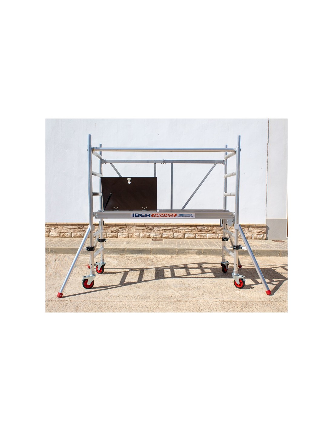 Andaime dobrável em alumínio 75x190 com altura de trabalho de 3 metros com portinhola e estabilizadores MINISTAB. Um modelo de alta qualidade pensado para profissionais graças à sua resistência e versatilidade. Foi especialmente concebido para trabalhos de interiores, graças ao seu tamanho e aspecto compacto, que lhe permitirá transportá-lo para onde quiser sem ter de o desmontar.
