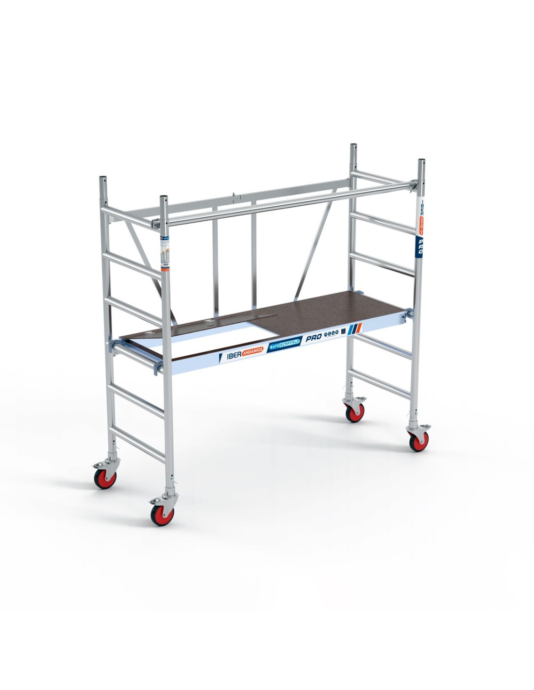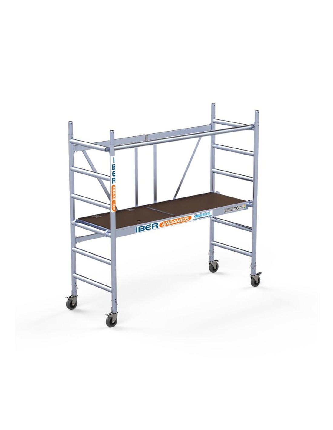 Andaime dobrável em alumínio 75x190 com altura de trabalho de 3 metros com portinhola e com barra extra. Um modelo de alta qualidade pensado para profissionais graças à sua resistência e versatilidade. Foi especialmente concebido para trabalhos de interiores, graças ao seu tamanho e aspecto compacto, que lhe permitirá transportá-lo para onde quiser sem ter de o desmontar.