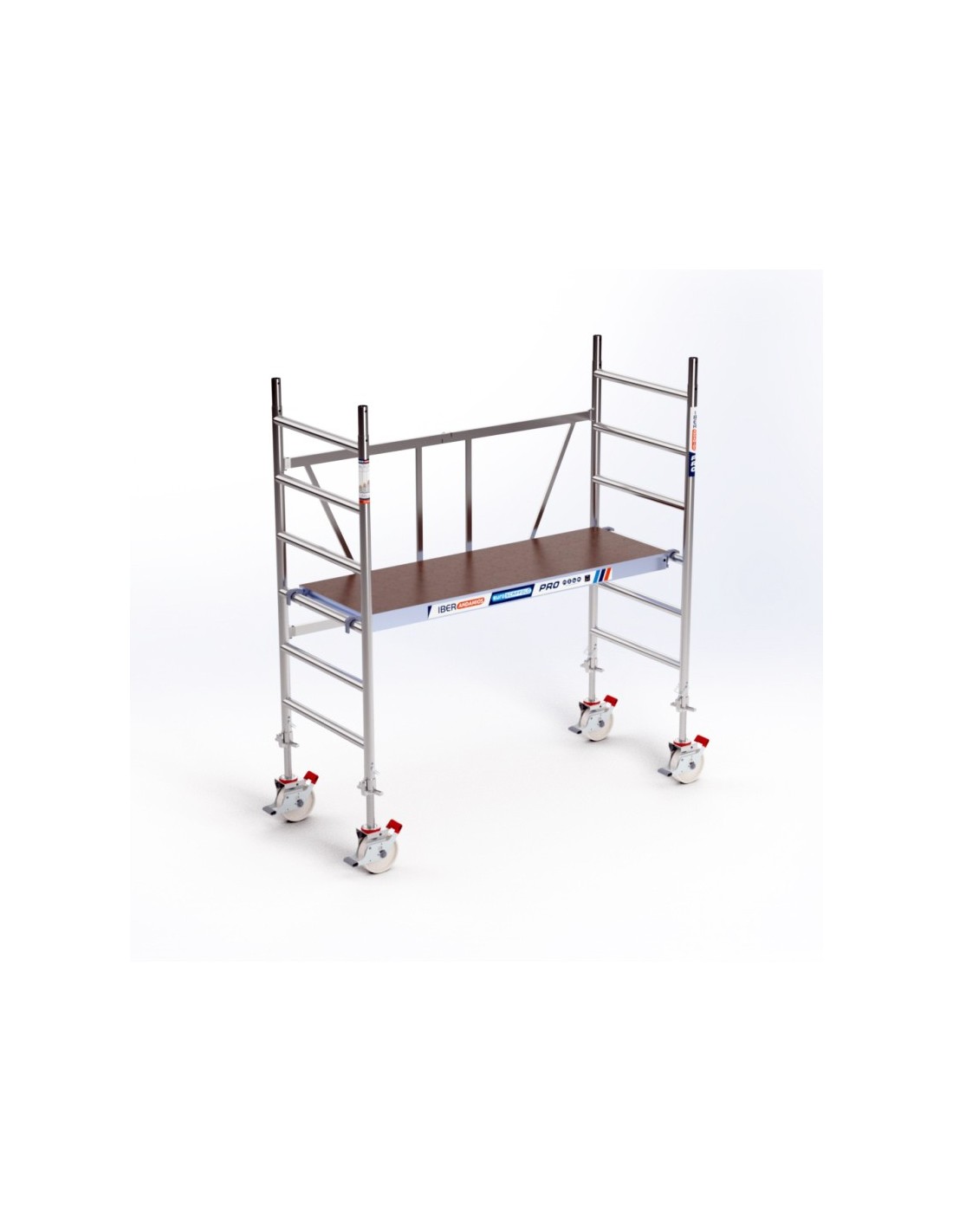 Andaime dobrável em alumínio 75x190 com altura de trabalho de 3 metros sem portinhola e com rodas em borracha de 200mm com fuso e carga até 500kg. Um modelo de alta qualidade pensado para profissionais graças à sua resistência e versatilidade. Foi especialmente concebido para trabalhos de interiores, graças ao seu tamanho e aspecto compacto, que lhe permitirá transportá-lo para onde quiser sem ter de o desmontar.