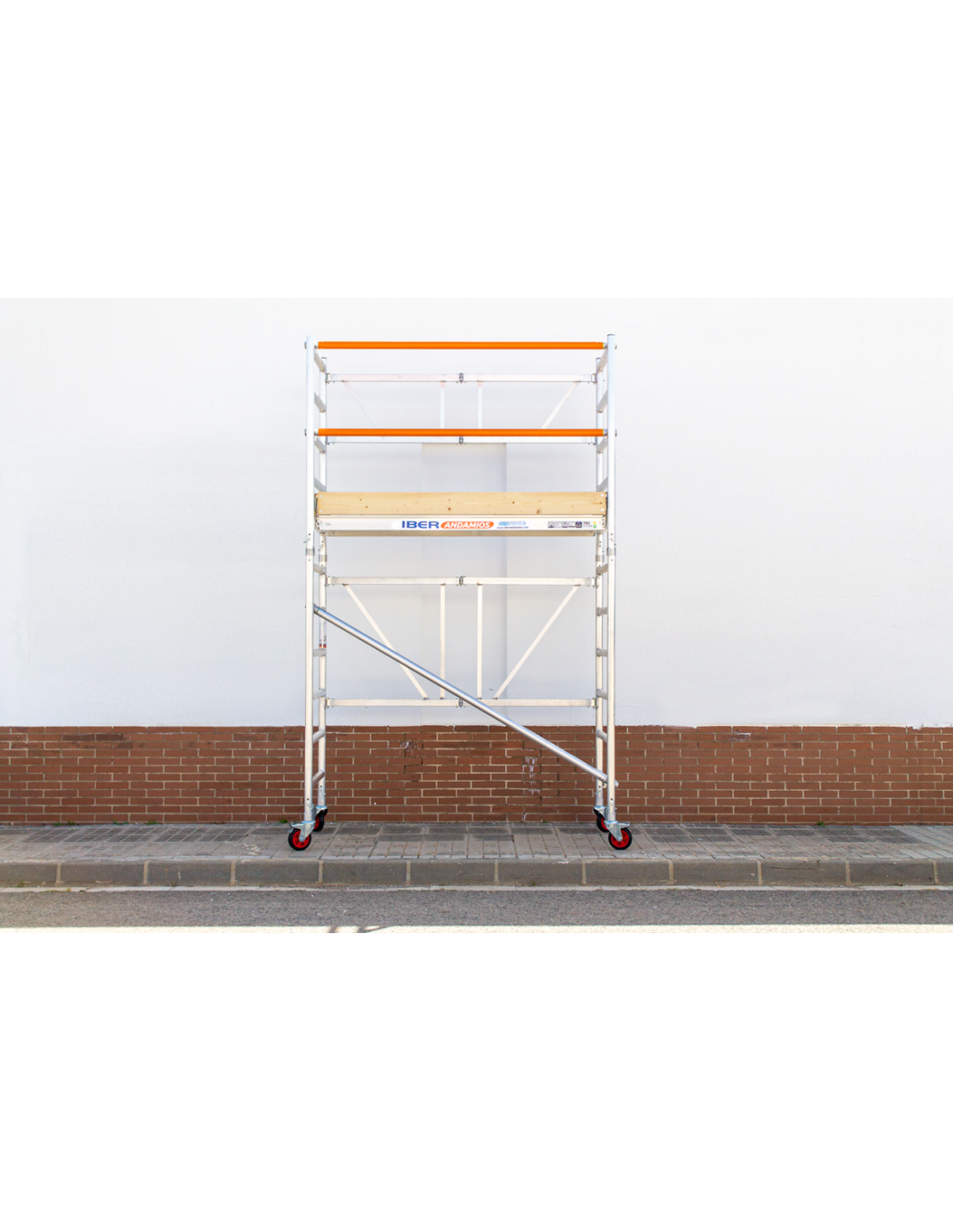 Andaime dobrável em alumínio 75x190 e 4,20 metros de altura de trabalho e com rodapés de madeira, de grande qualidade e versatilidade, pois pode ser utilizado em todo o tipo de obras. Fácil de manusear e de montar, pode até movê-lo sem ter de o desmontar.