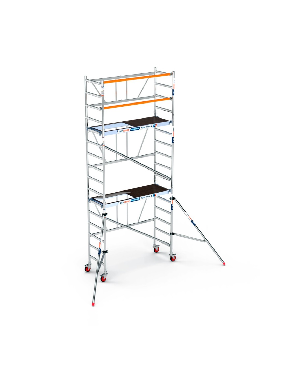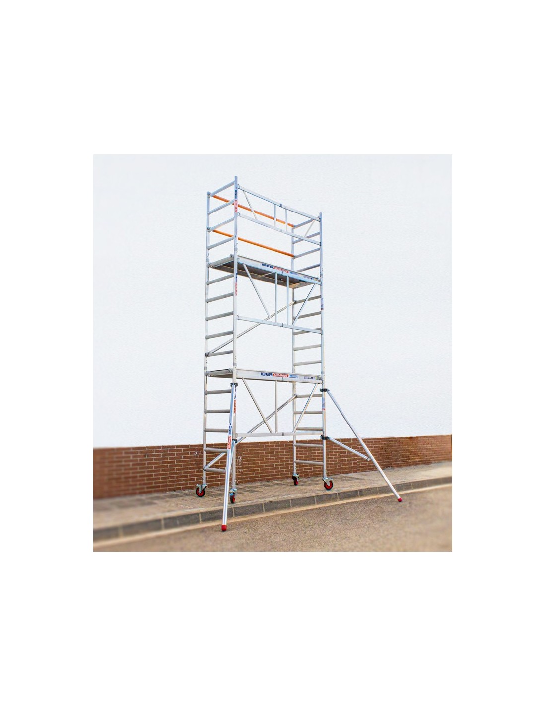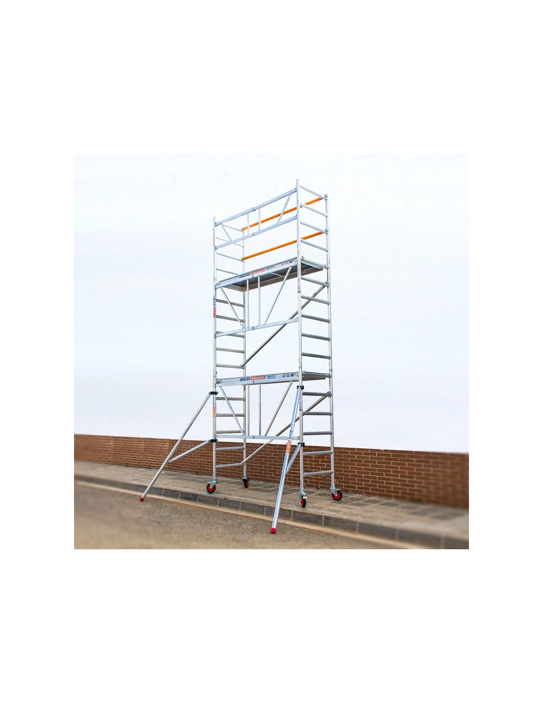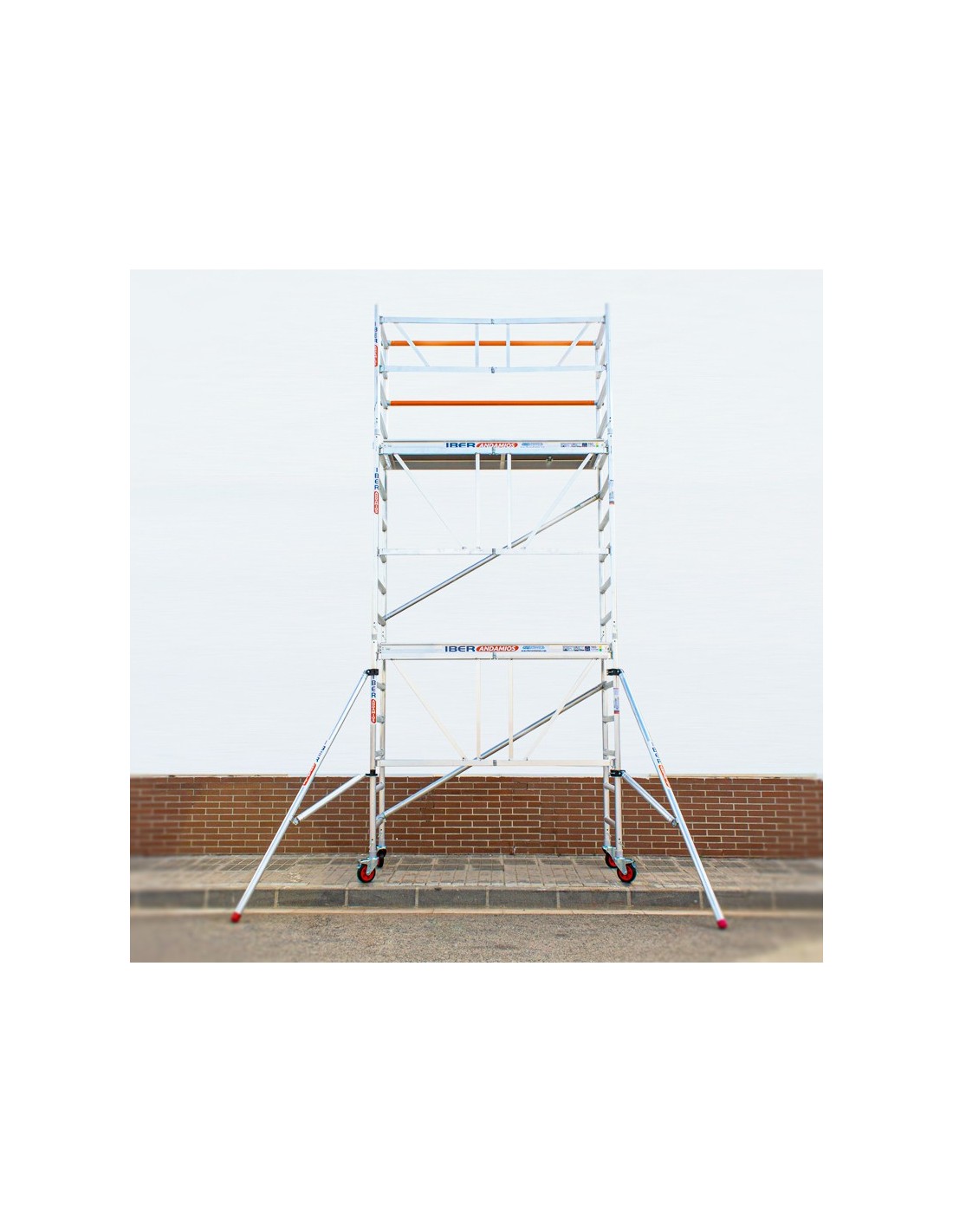 Andaime dobrável em alumínio 75x190 e 5,70 metros de altura de trabalho com estabilizadores, de grande qualidade e versatilidade, pois pode ser utilizado em todo o tipo de obras. Fácil de manusear e de montar, pode até movê-lo sem ter de o desmontar.