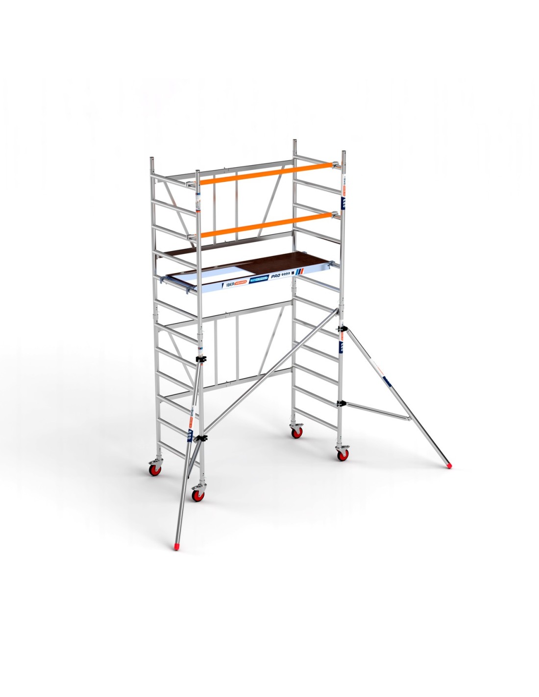 Andaime dobrável em alumínio 90x190 e 4,70 metros de altura de trabalho com estabilizadores, de grande qualidade e versatilidade, pois pode ser utilizado em todo o tipo de obras. Fácil de manusear e de montar, pode até movê-lo sem ter de o desmontar. Andaime dobrável concebido para uso profissional, pronto em apenas 4 minutos. Este andaime dobrável pode ser ampliado para atingir uma altura máxima de trabalho de 7,50 metros.