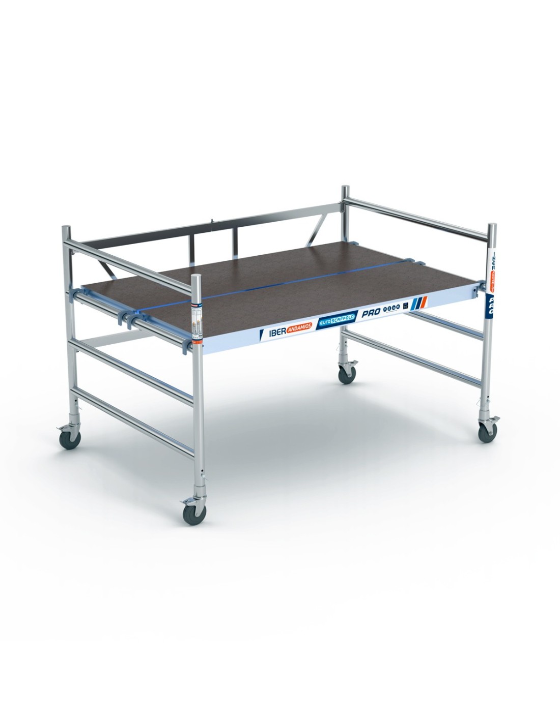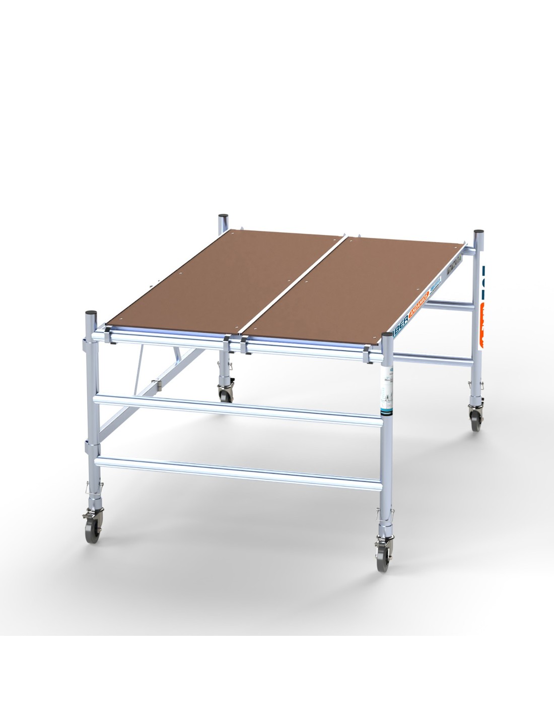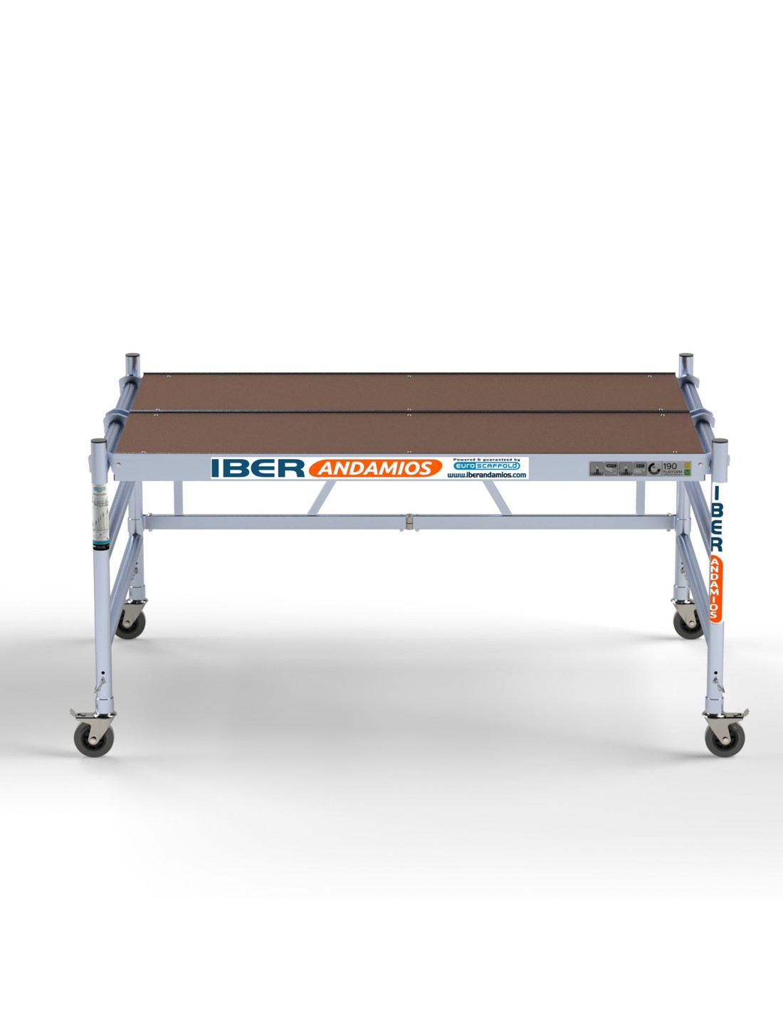 Andaime dobrável em alumínio READY 135x190 com 3 metros de altura de trabalho. O modelo perfeito tanto para profissionais de construção ou manutenção, como para entusiastas individuais de bricolage. Acompanha duas plataformas de trabalho, uma de 190x60 cm e outra de 190x30 cm, que poderá combinar ao seu gosto e de acordo com as necessidades do seu trabalho (ver fotografias). Modelo não expansível.