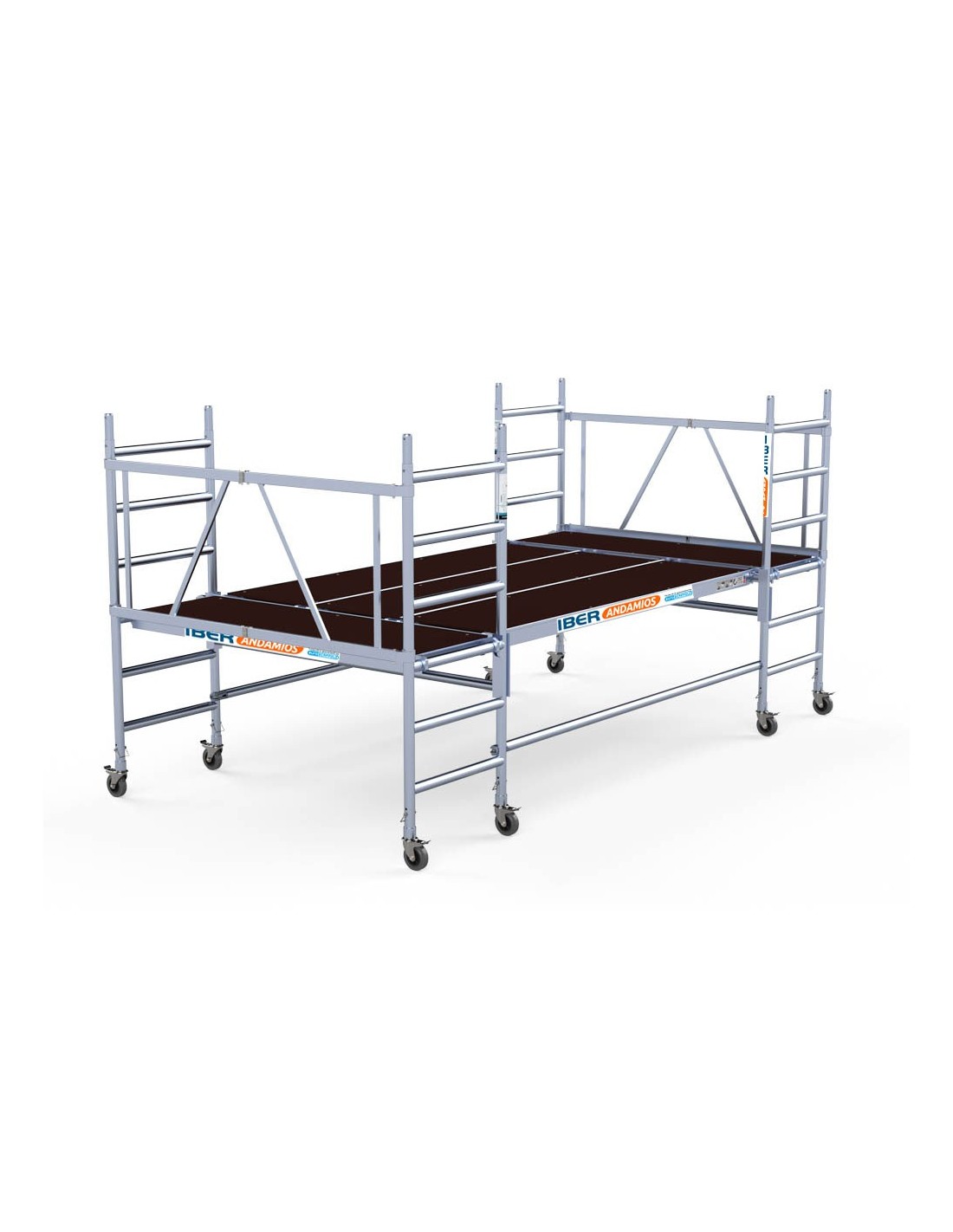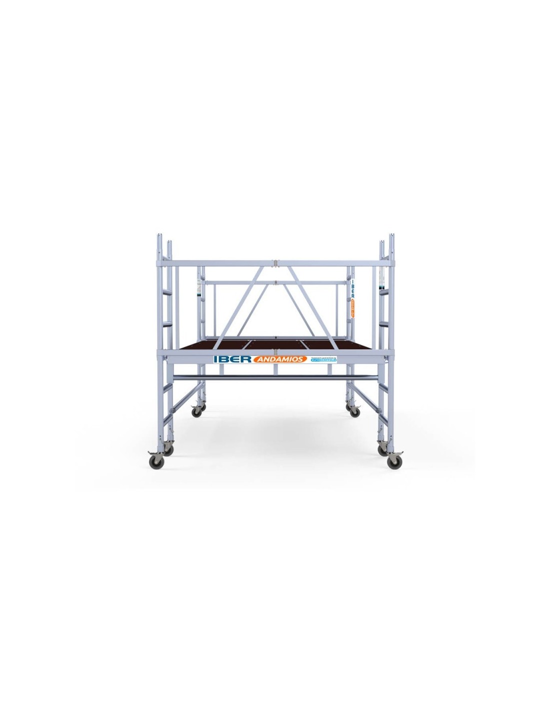 Andaime de alumínio multiplataforma 190x400 com 3 metros de altura de trabalho. Este andaime dobrável é a opção perfeita para quem realiza trabalhos em tetos (profissionais de gesso cartonado, manutenção, pintores, eletricistas, etc.), graças à sua ampla plataforma. É um andaime multiplataforma, leve e fácil de montar, fica pronto em apenas 5 minutos.