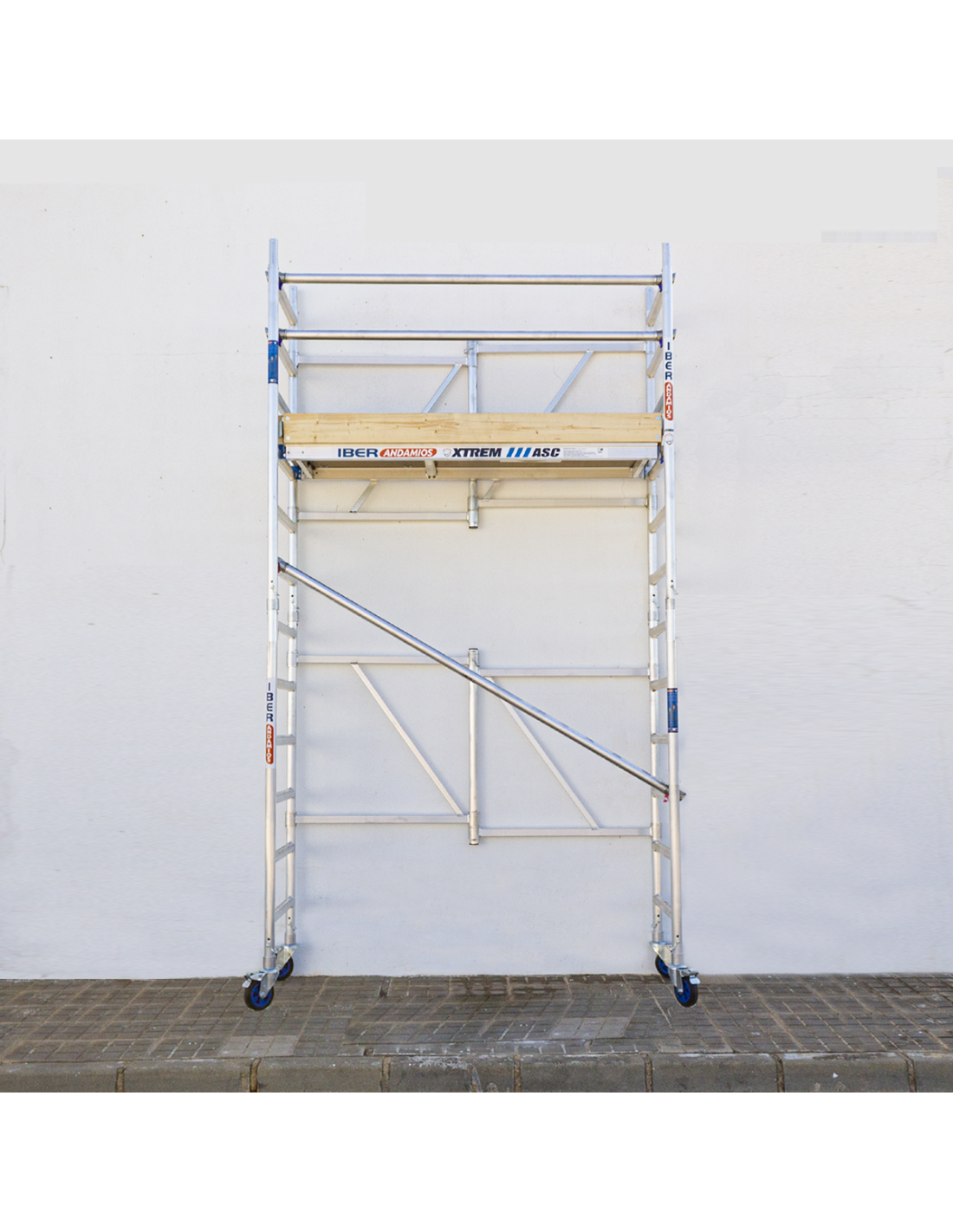 O andaimes dobrável de alumínio 75x190 com 4,70m de altura de trabalho da linha XTREM com rodapés de madeira, adapta-se a qualquer que seja a sua necessidade de trabalho em altura. Este andaime dobrável de alumínio destaca-se pela resistência do seu material, pela sua facilidade de montagem e pela extraordinária qualidade das suas peças e componentes. Este andaime dobrável em alumínio está 100% homologado e cumpre as normas europeias de segurança e de homologação. Este modelo em particular tem uma altura de trabalho de 4,70 m, mas graças ao seu carácter extensível, pode atingir até 7,50 metros.