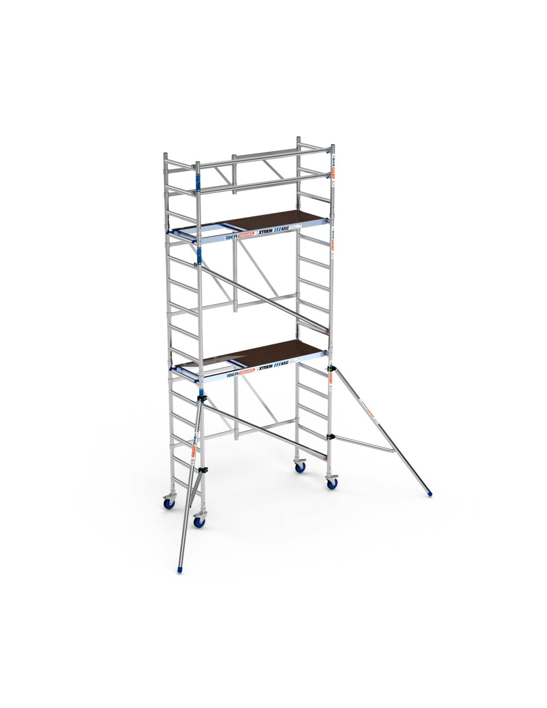 O andaimes dobrável de alumínio 75x190 com 5,70m de altura de trabalho com estabilizadores da linha XTREM da IBERANDAMIOS, adapta-se a qualquer que seja a sua necessidade de trabalho em altura. Este andaime dobrável de alumínio destaca-se pela resistência do seu material, pela sua facilidade de montagem e pela extraordinária qualidade das suas peças e componentes. Este andaime dobrável em alumínio está 100% homologado e cumpre as normas europeias de segurança e de homologação. Este modelo em particular tem uma altura de trabalho de 5,70 m, mas graças ao seu carácter extensível, pode atingir até 7,50 metros.