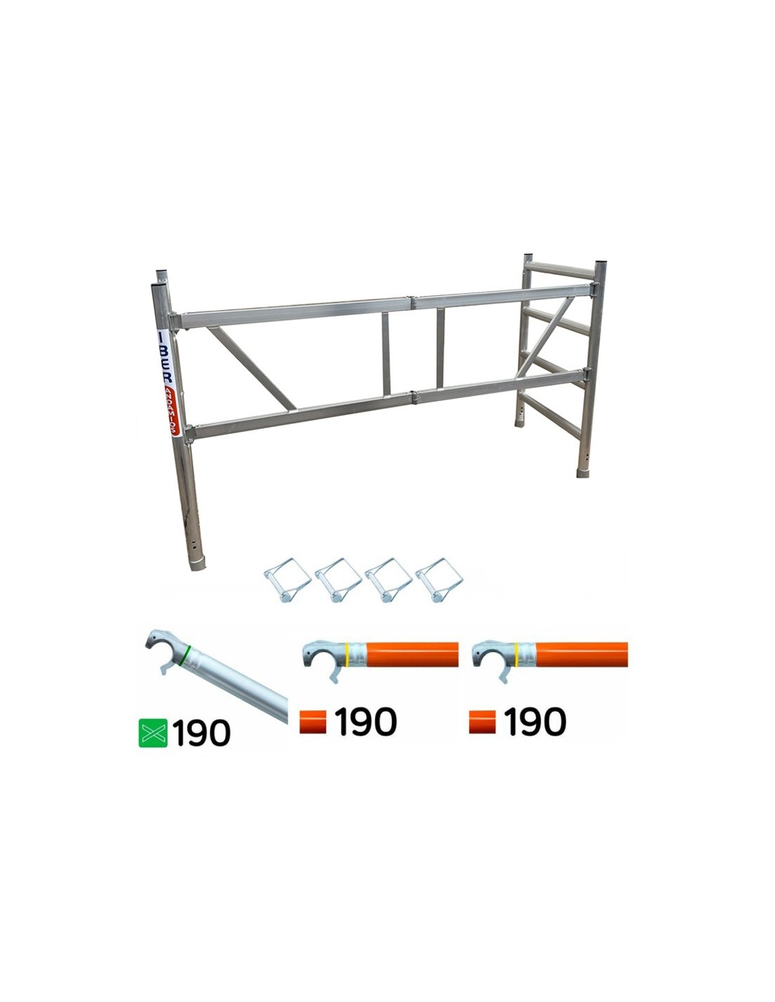 Módulo extensível de 3 metros a 3,85 metros-A para andaimes dobráveis com escotilha. Fácil de montar e desmontar, bem como de armazenar e transportar. Expansível até 7,50 metros de altura de trabalho. As suas dimensões são 75 cm de largura por 190 cm de comprimento.