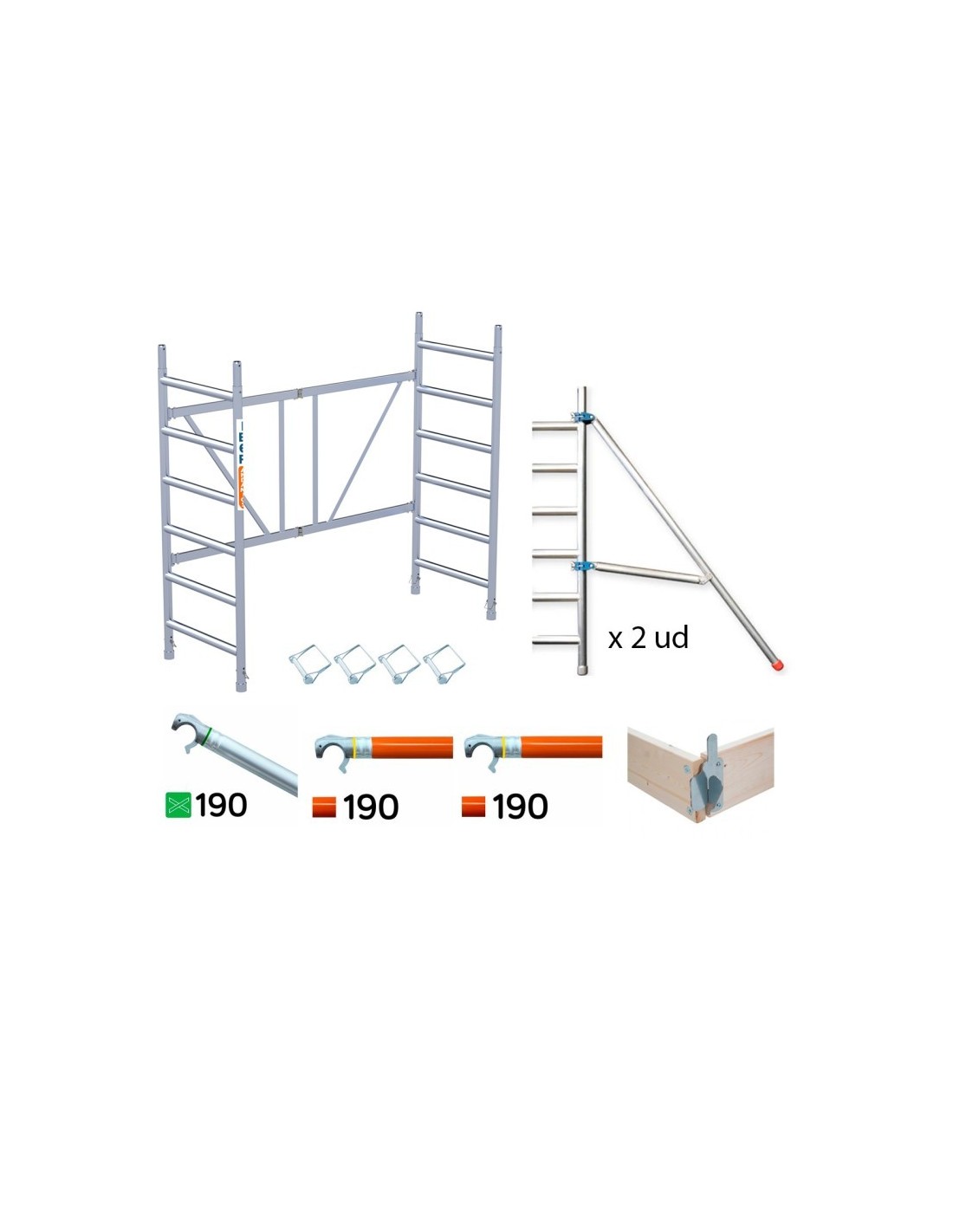 Este módulo expansível para andaimes dobráveis contém: