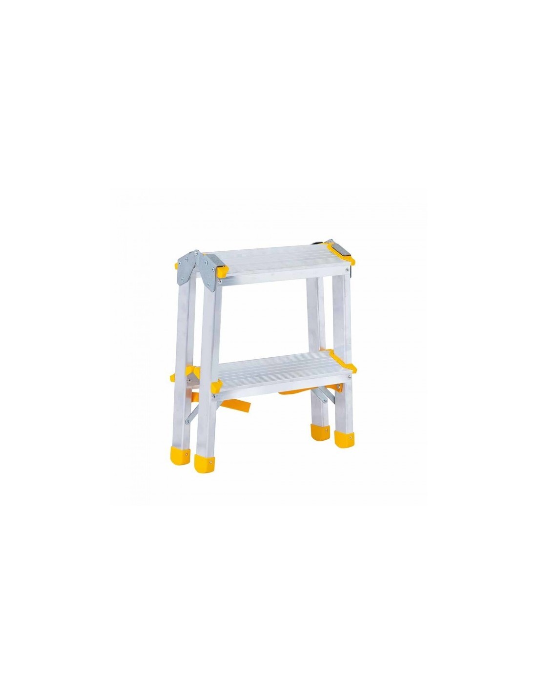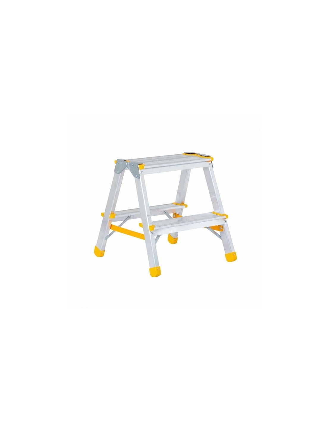 Escada doméstica dupla com degraus 2x2, com degraus antiderrapantes e fabricada em alumínio. Fácil de arrumar e a opção perfeita para pequenas tarefas domésticas que exigem um pouco mais de altura.