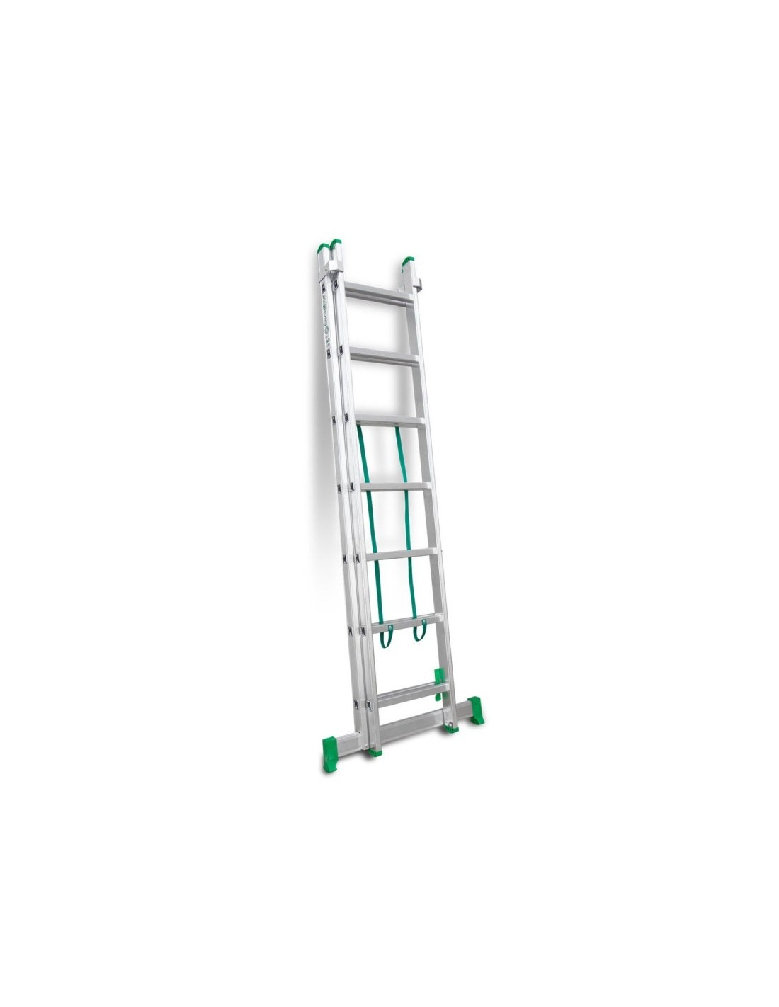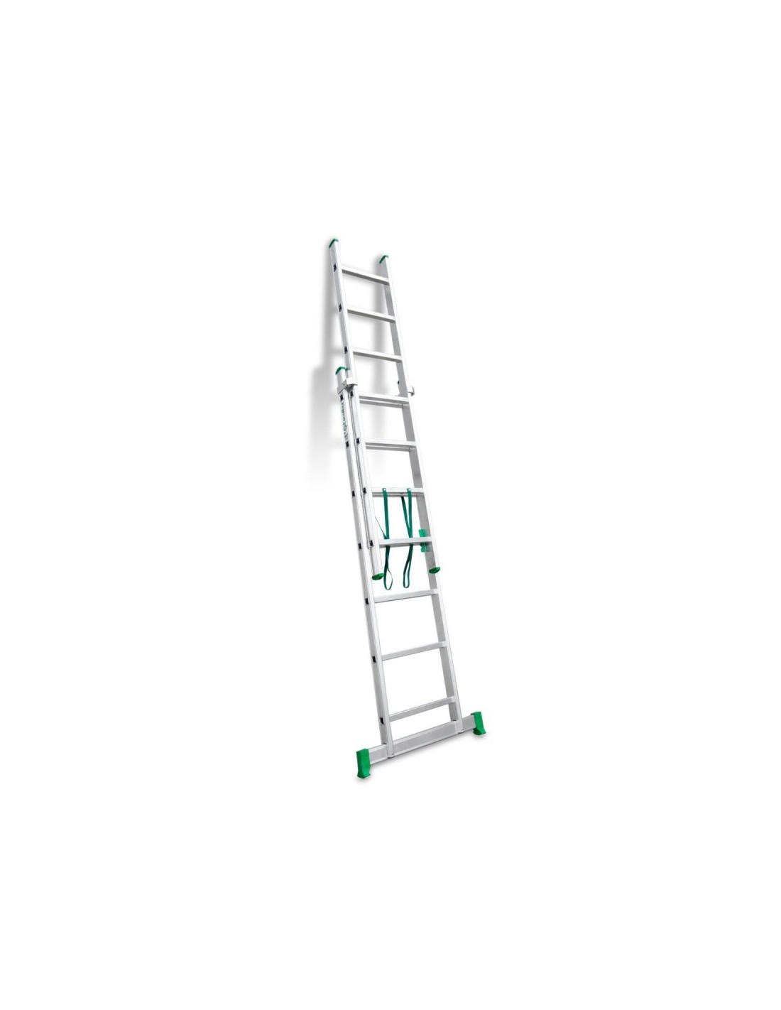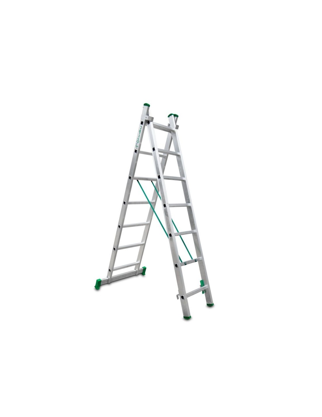 Escada doméstica multiusos ES-DOBLE7 com duas secções em alumínio e especialmente concebida para uso DIY. Pode usá-lo em até duas posições, tesoura e estendido na parede. É a escada perfeita para realizar trabalhos em superfícies irregulares.