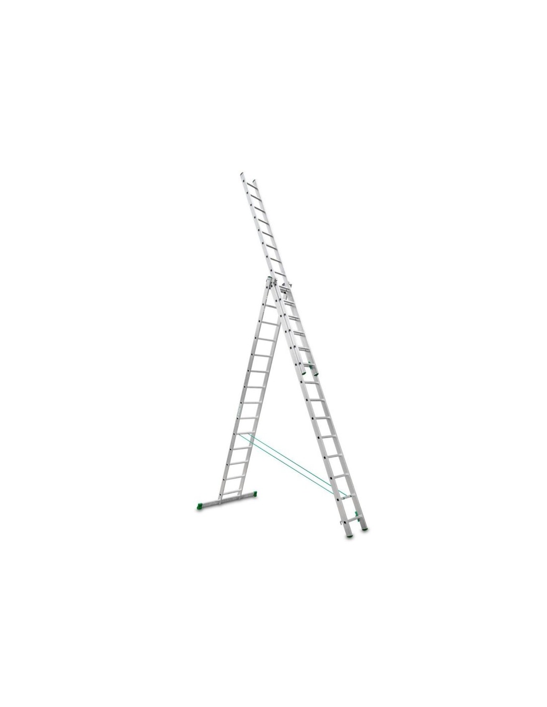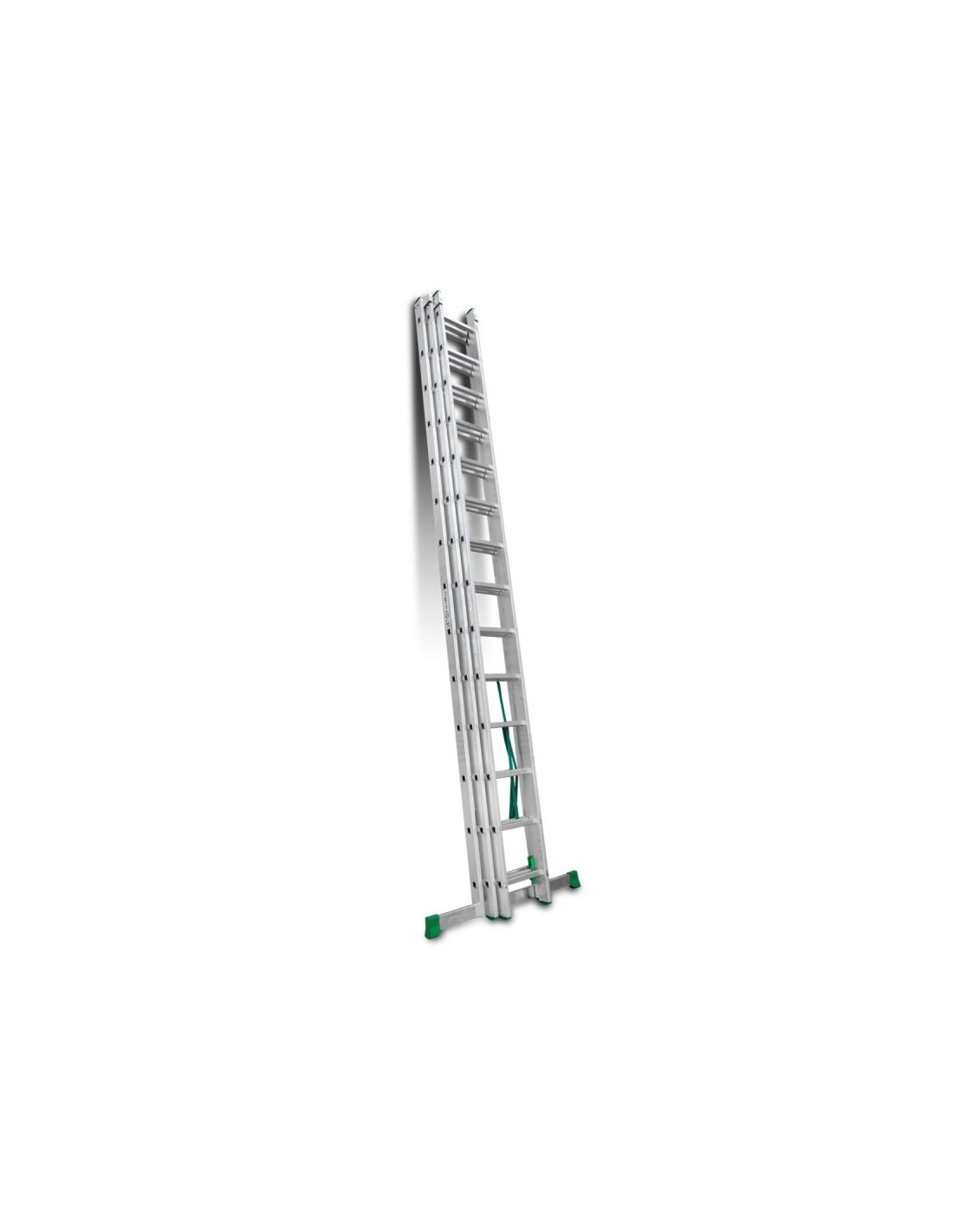 Escada doméstica multiusos ES-TRIPLE14 com três secções em alumínio e especialmente concebida para uso DIY. Pode usá-lo em até duas posições, tesoura e estendido na parede. É a escada perfeita para realizar trabalhos em superfícies irregulares.