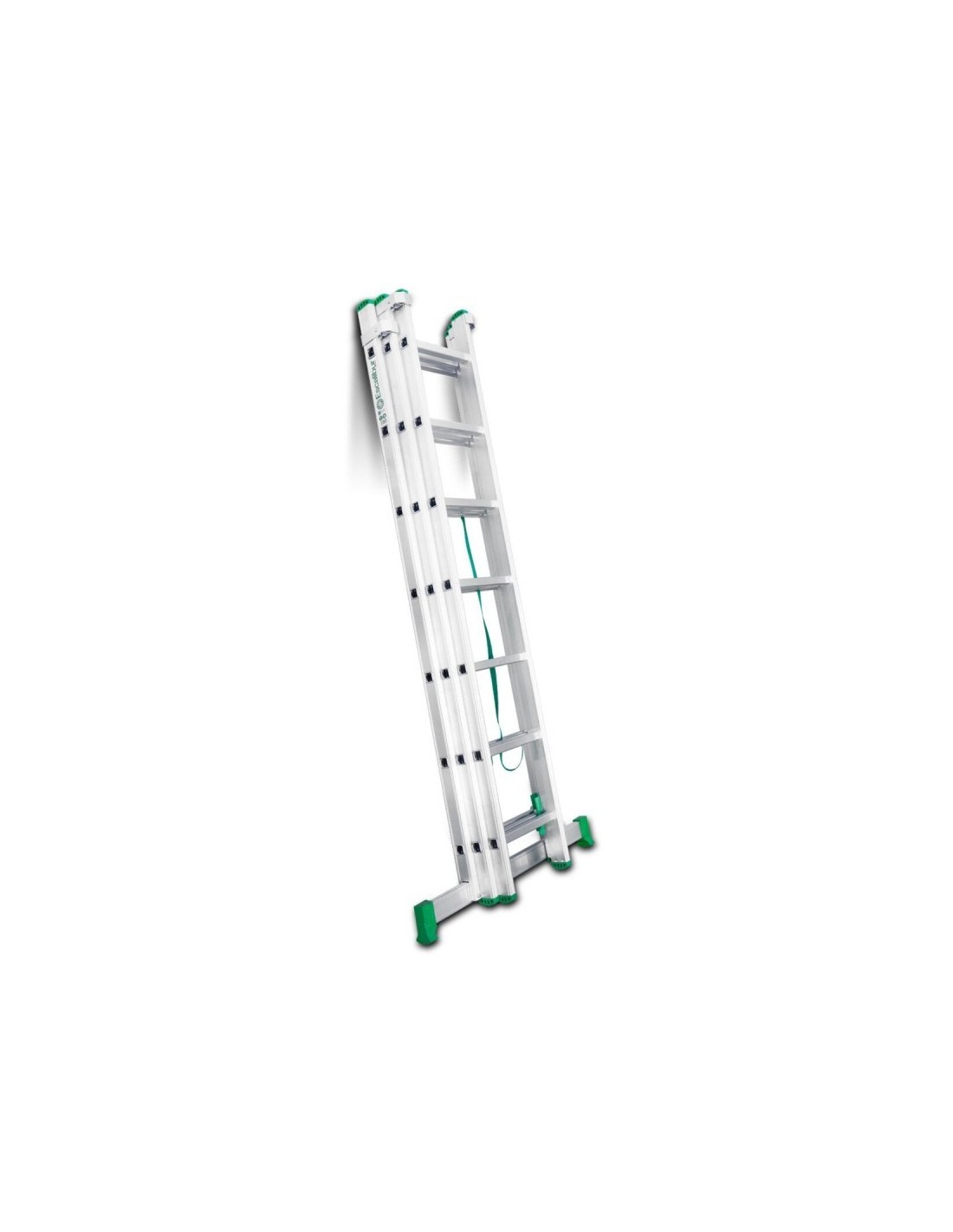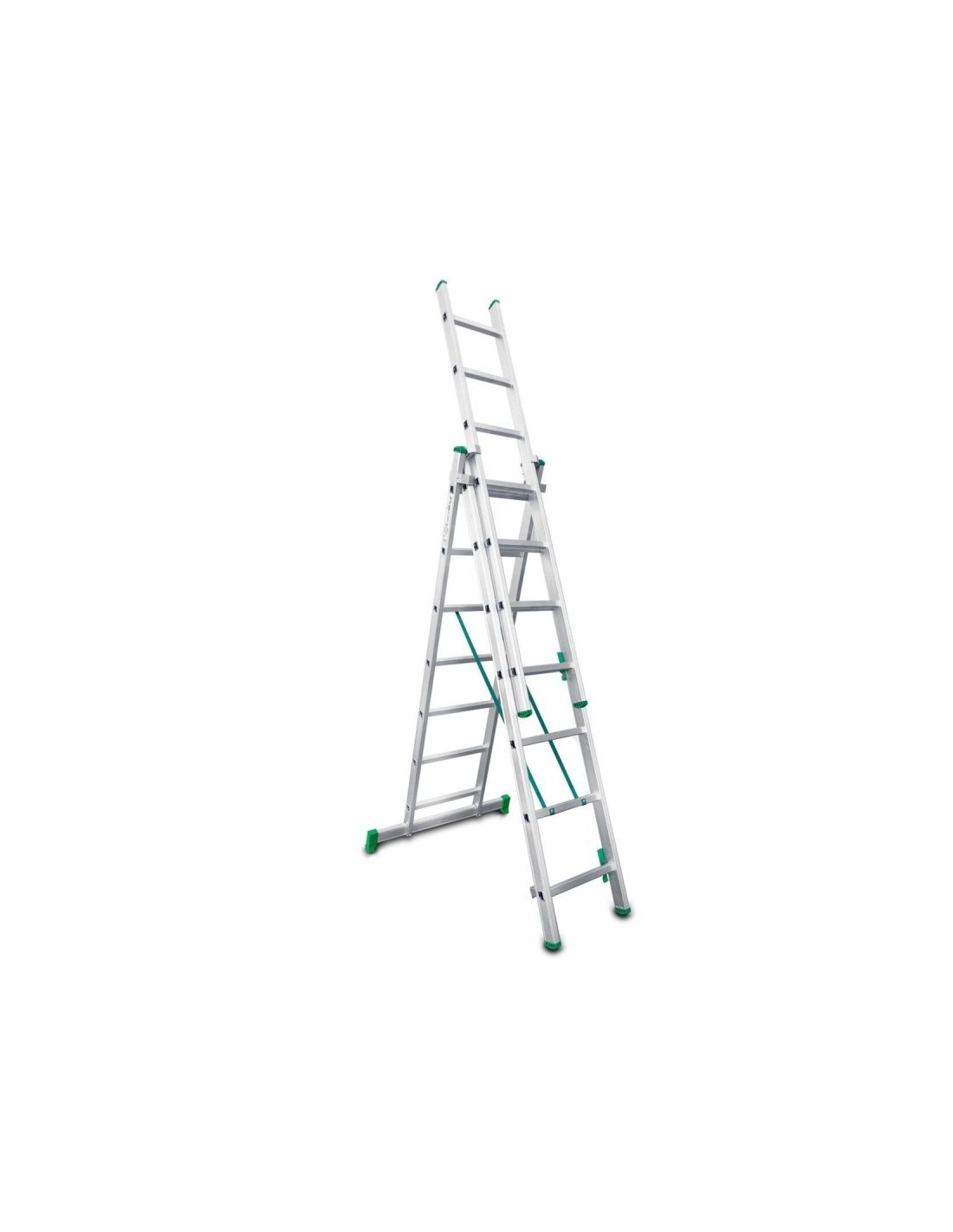 Escada doméstica multiusos ES-TRIPLE7 com três secções em alumínio e especialmente concebida para uso DIY. Pode usá-lo em até duas posições, tesoura e estendido na parede. É a escada perfeita para realizar trabalhos em superfícies irregulares.