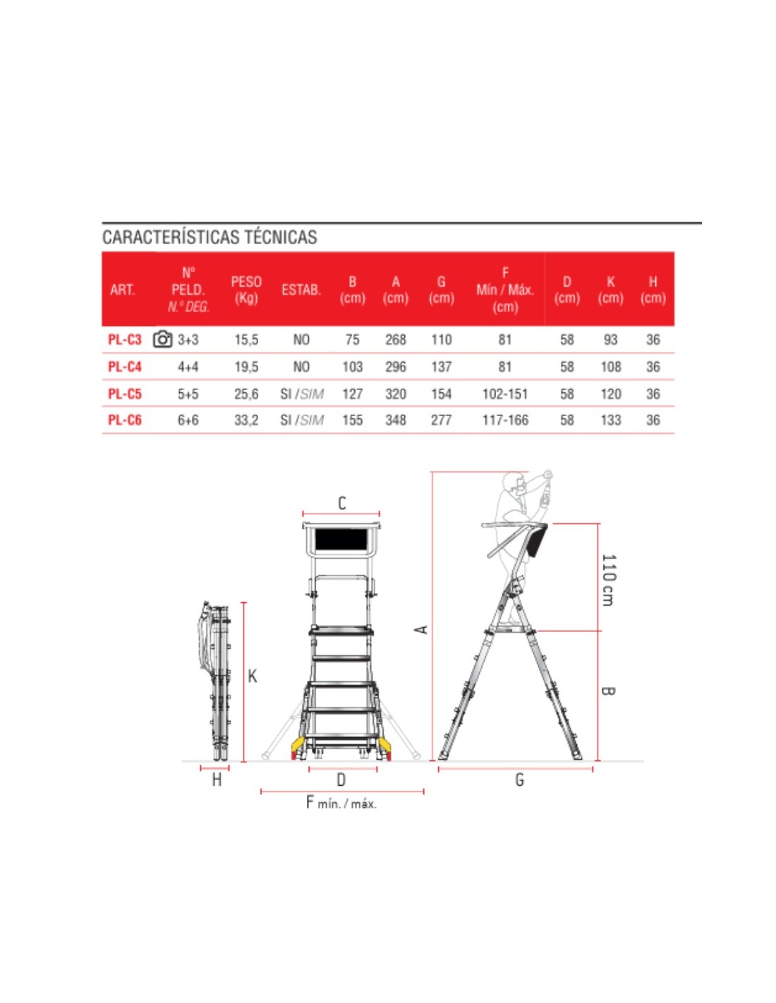 Escada Dobrável em Alumínio PL-C6 com Altura Ajustável - Faraone