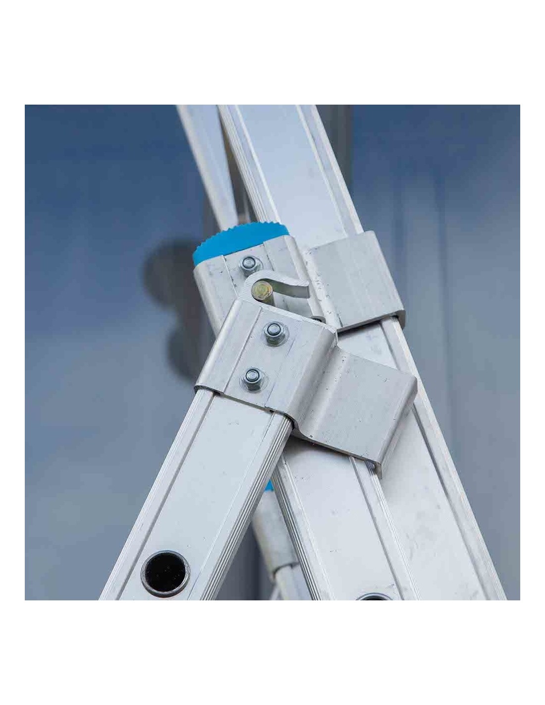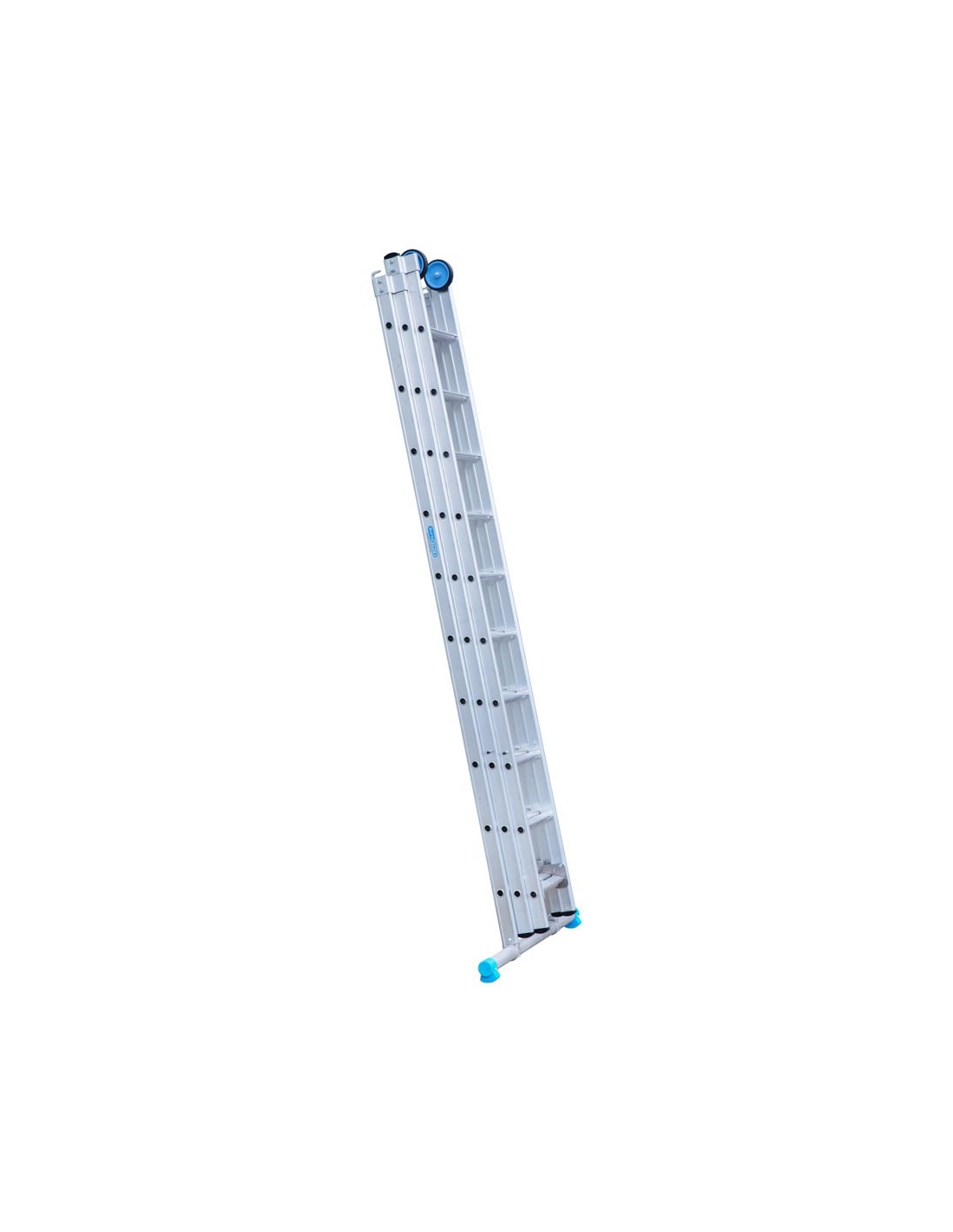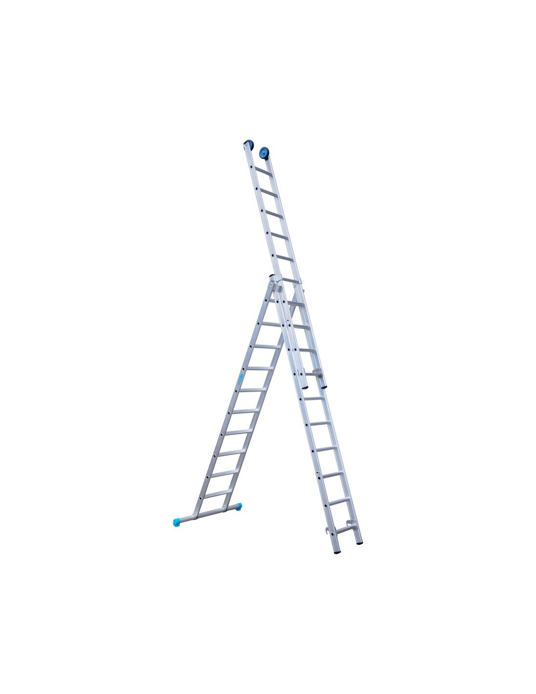 Escada extensível profissional com degraus 3x10, perfeita para a realização de trabalhos interiores e exteriores. Pode ser utilizado na posição A e encostado à parede. Esta escada profissional tem 3 secções de alumínio, o que a torna uma escada extensível, fácil de utilizar e de mover. Altura máxima de trabalho 6,25 metros.