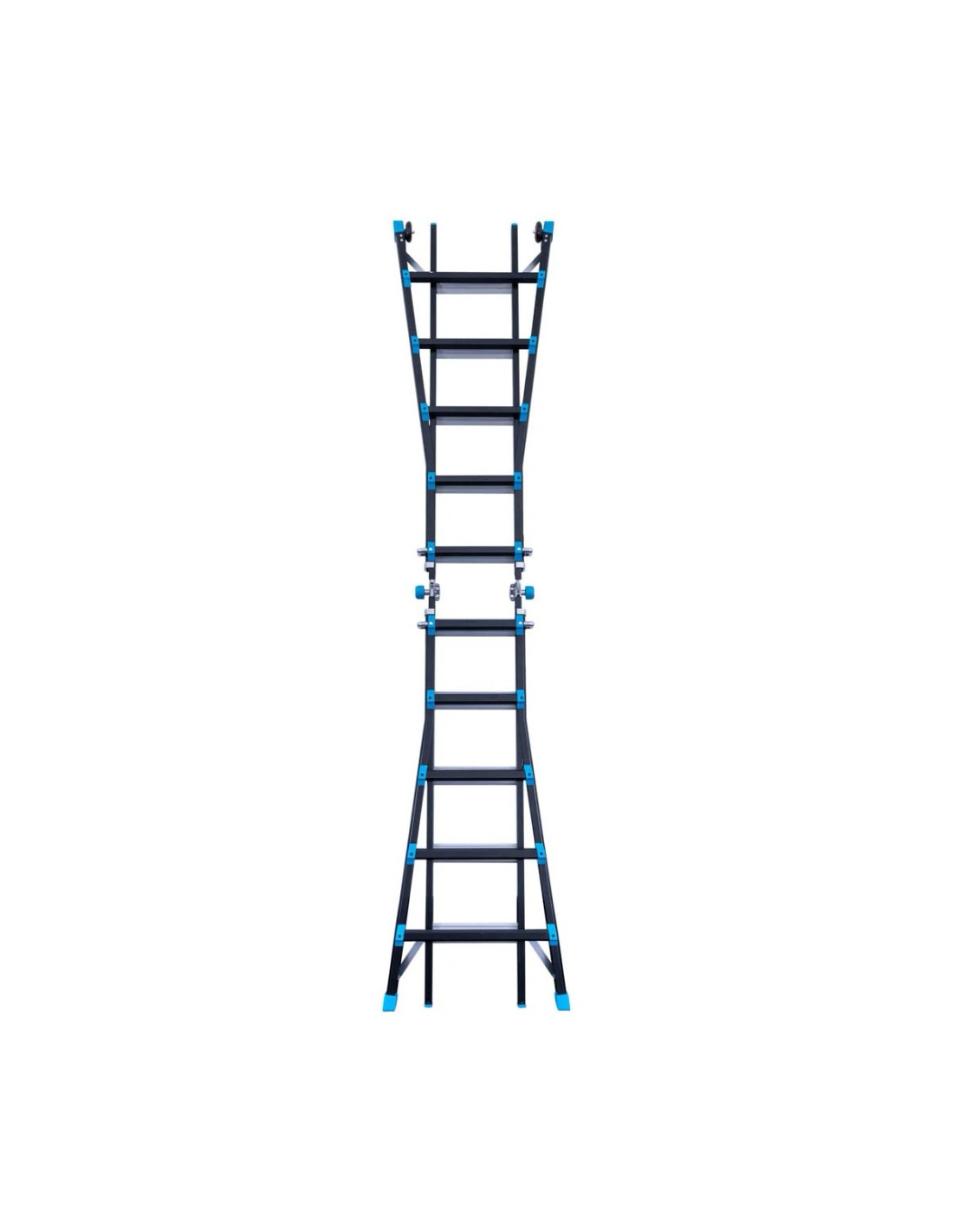 Escada Multiescada multifuncional profissional com degraus 4x5, fabricada em alumínio de alta qualidade. Utilize a nossa escada telescópica em diferentes posições, dependendo das necessidades do seu trabalho. Graças à sua versatilidade, pode utilizá-lo como quiser, sem ter de o encostar à parede. Ideal para realizar trabalhos de manutenção, pintura ou reparação em telhados.