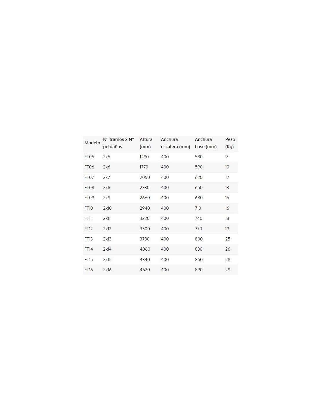 Escada profissional de fibra de dois degraus com 11 degraus. Este modelo também está disponível de 4 a 16 passos, dependendo das preferências, no nosso catálogo. Esta escada profissional de fibra dupla tipo tesoura cumpre a norma EN131 e permite uma abertura de 72º em cada troço.
