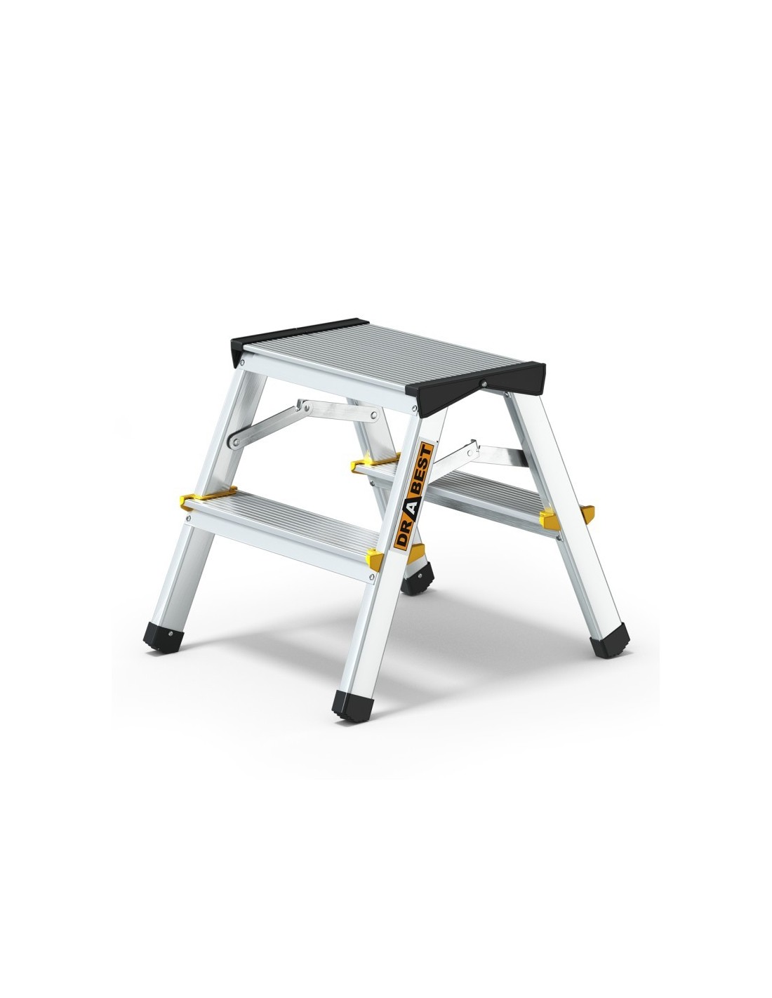 - Degraus largos e ondulados rebitados nas longarinas e protegidos com tampas de plástico