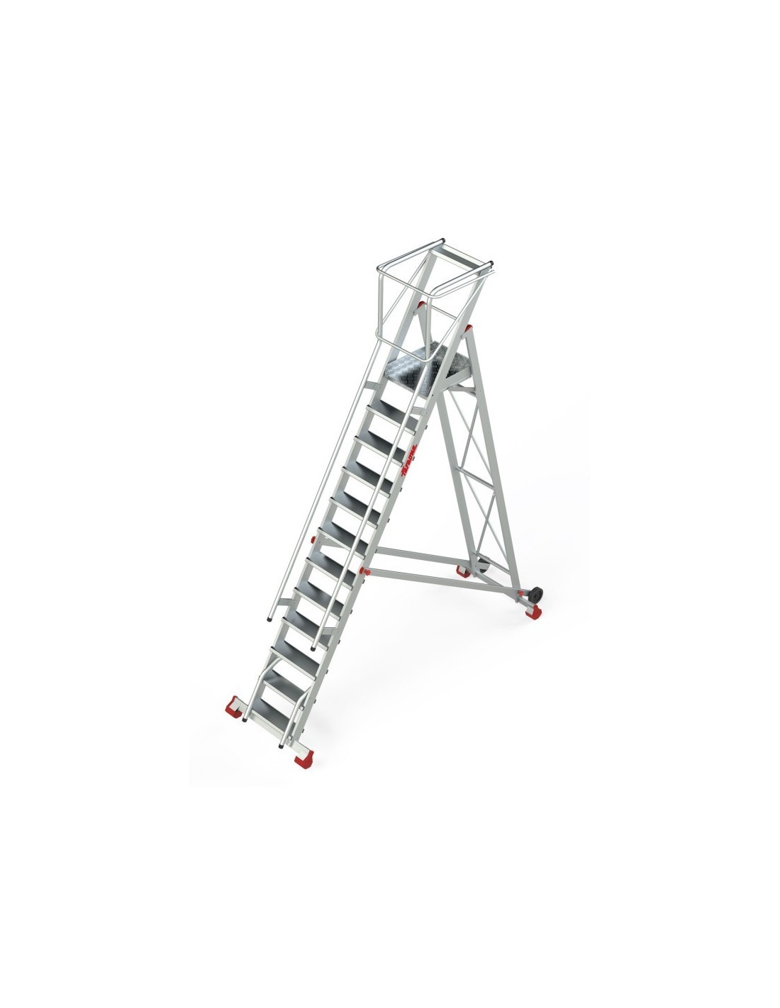 Escada profissional tipo ponte com plataforma e rodas 15 degraus SP60 - FARAONE