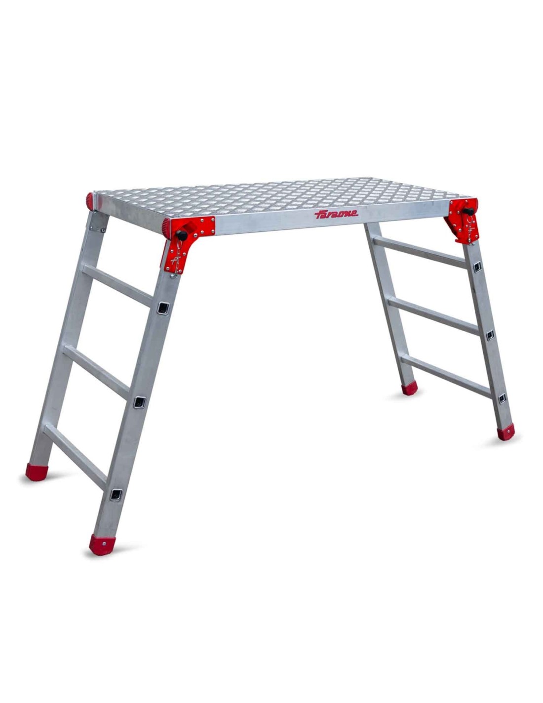 Plataforma de trabalho dobrável de 4 passos, concebida para uso profissional. Esta plataforma dobrável, graças ao facto de ser fabricada em alumínio, é uma plataforma de trabalho leve e resistente ao mesmo tempo, fácil de transportar e armazenar. Plataforma dobrável perfeita para a realização de trabalhos que não exijam muita altura, como por exemplo a manutenção doméstica.